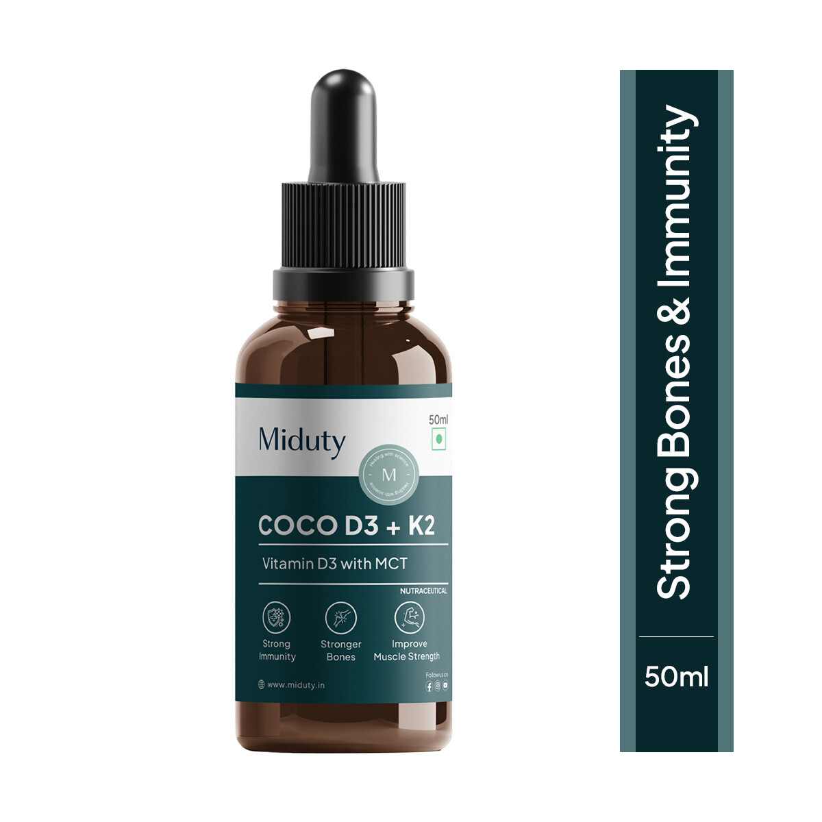 Miduty | Coco D3+K2 Drops for Kids & Babies | 600 IU D3 + MK-7 | Bone, Teeth & Immunity Support| 50ml