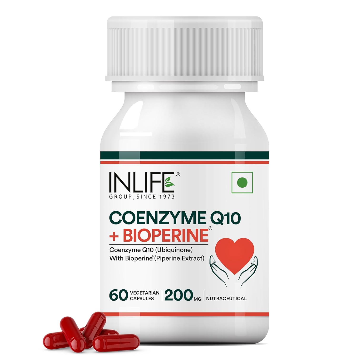 Inlife | Coenzyme Q10 CoQ10 200mg with Bioperine (Piperine) 8mg Supplement | 60 Veg Cap (200mg) (Pack of 1, 60)