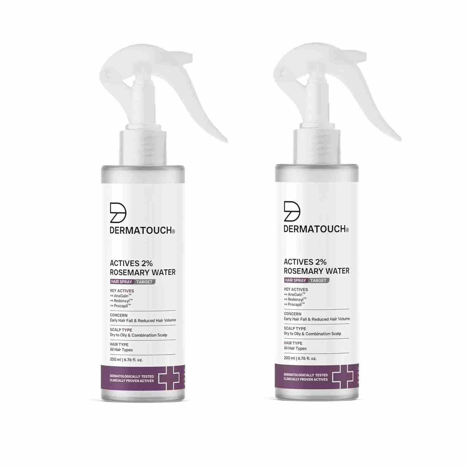Dermatouch | Actives 2% Rosemary Water Hair Spray | 200ml | Pack of 2