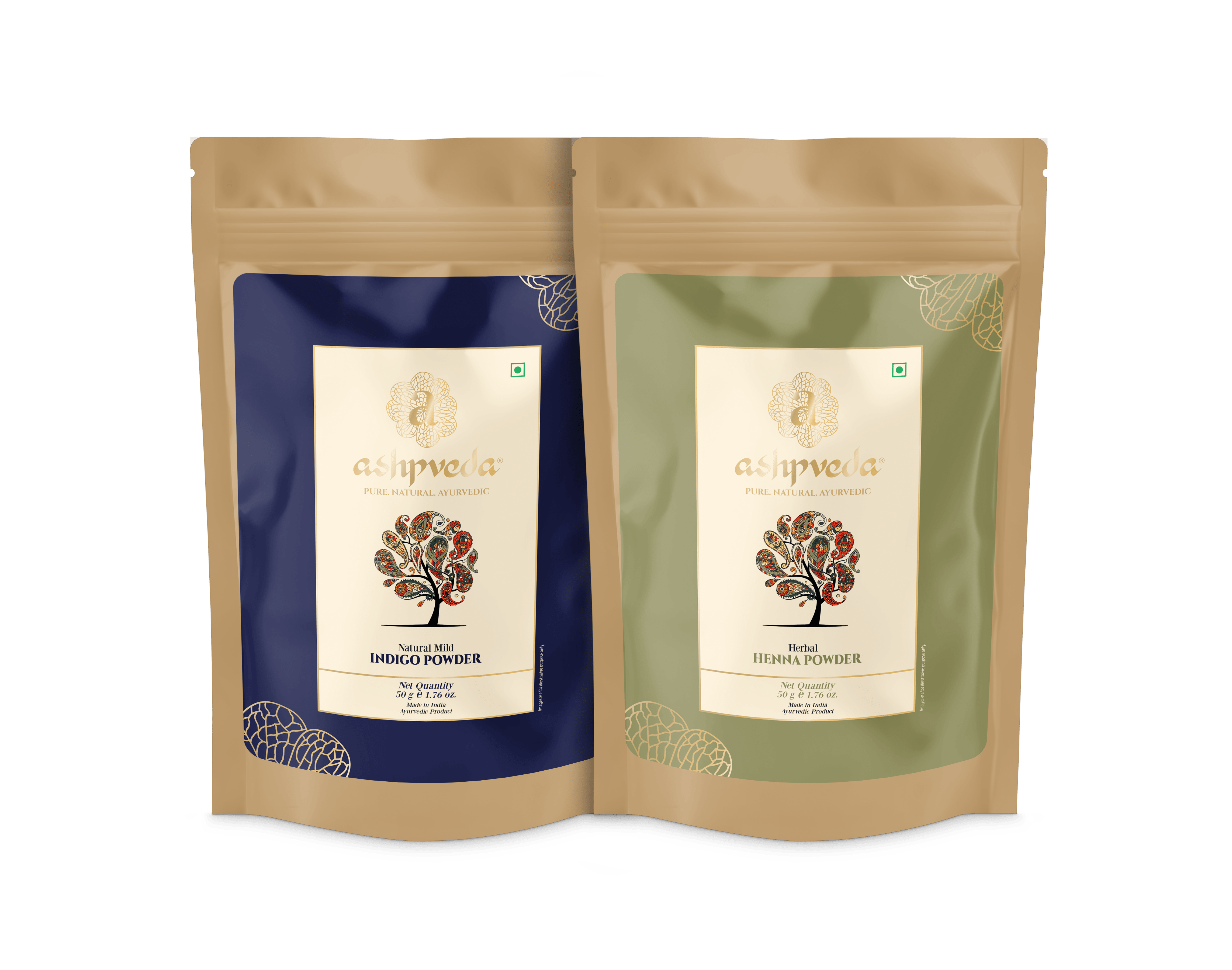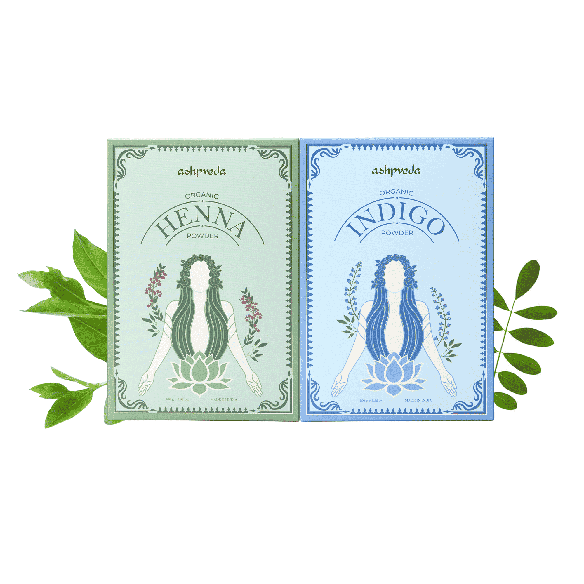 Ashpveda | Hair Color Henna & Indigo Powder Combo | 100% Organic Plant-Based, Sun Dried, Triple Refined | Pack of 2
