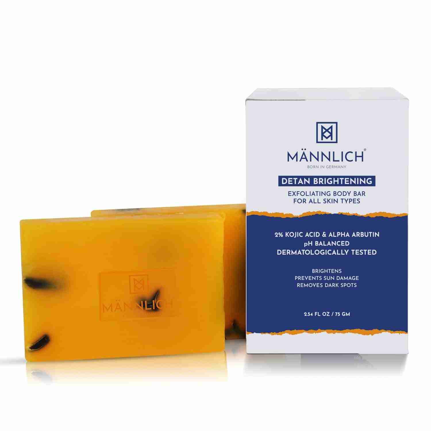 Mannlich | 2% Kojic Skin Brightening & Detan Soap | Reduces Dark Spots,Tan & Pigmentation | 75g