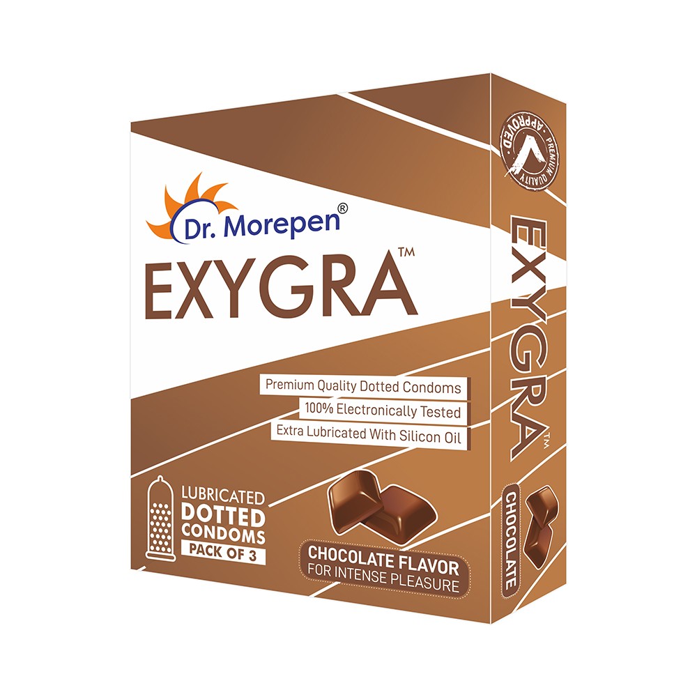 Dr. Morepen | Exygra Condoms | Ultra-Thin, Lubricated, Extra Dotted | Chocolate Flavour | 60 Count