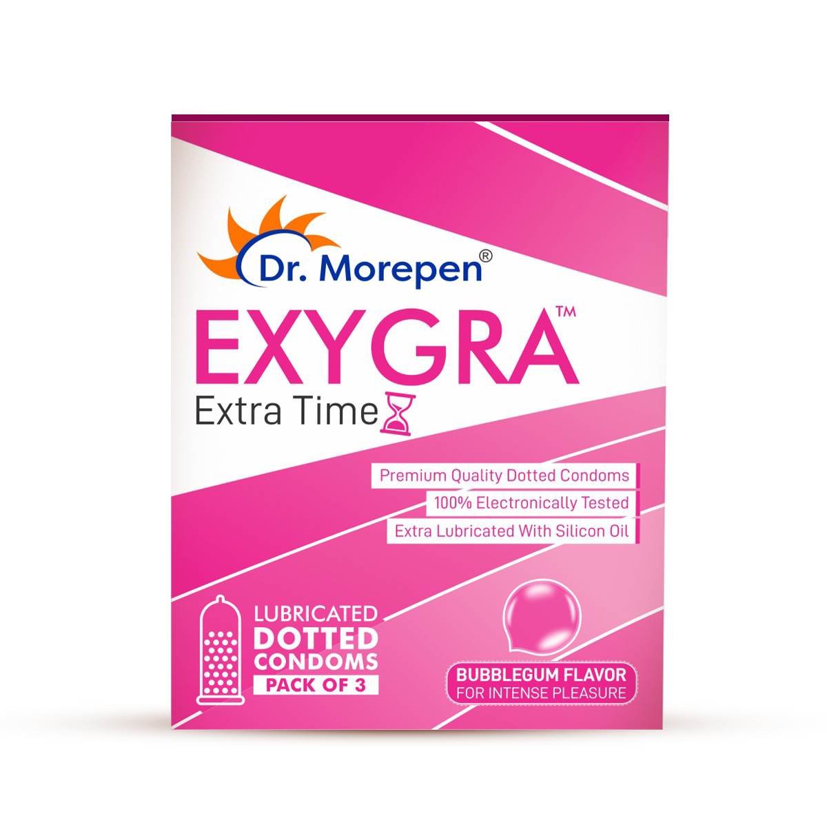 Dr. Morepen | Exygra Condoms | Ultra-Thin, Lubricated, Extra Dotted | Bubblegum Flavour | 10 Count
