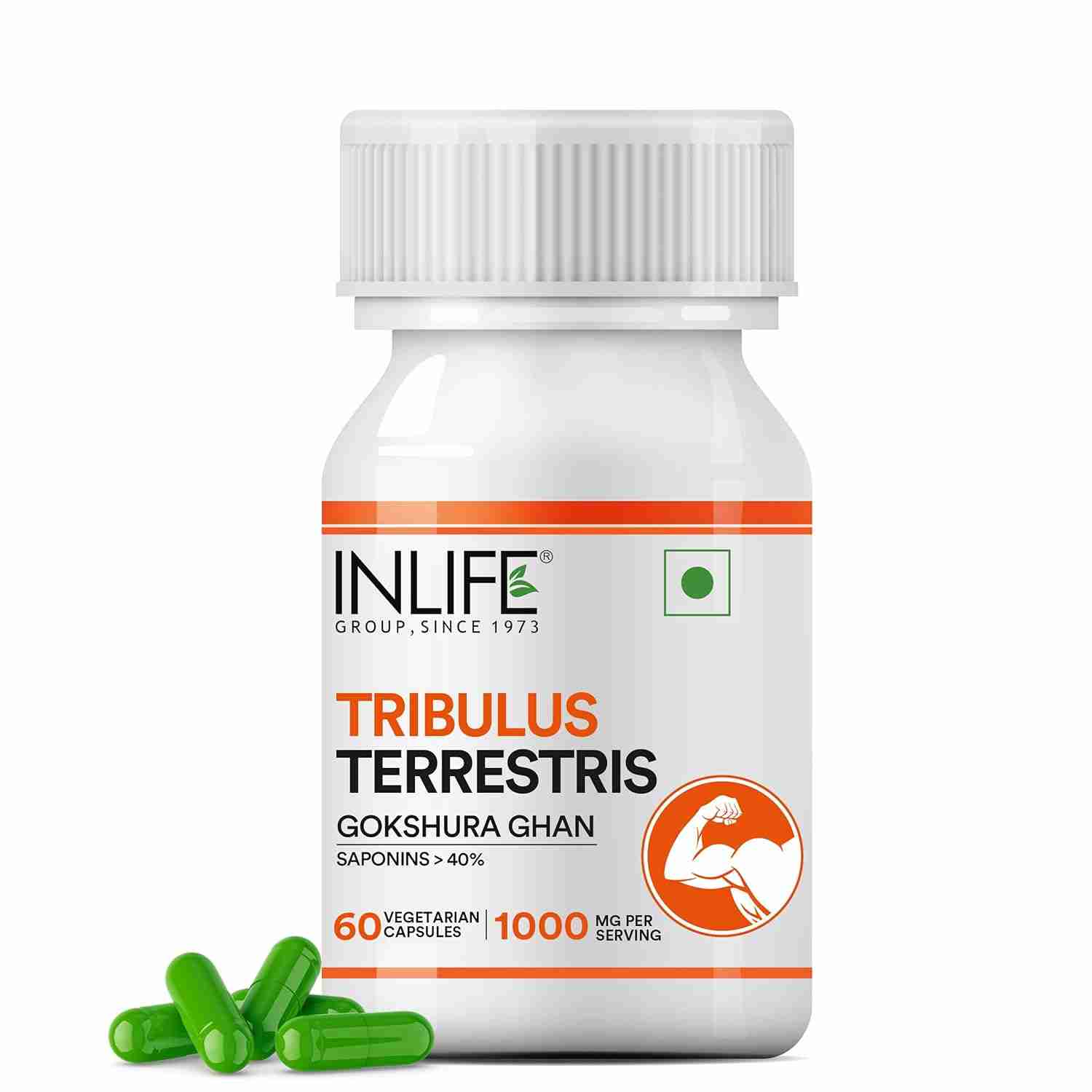 Inlife | Tribulus Terrestris For Men | Gokshura with Saponins 40%, 1000mg per serving | 60 Veg Cap