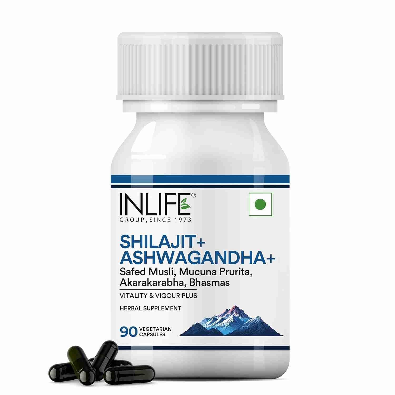 Inlife | Shilajit with Ashwagandha Safed Musli Akarkara | For Men & Women | 90 Veg Cap