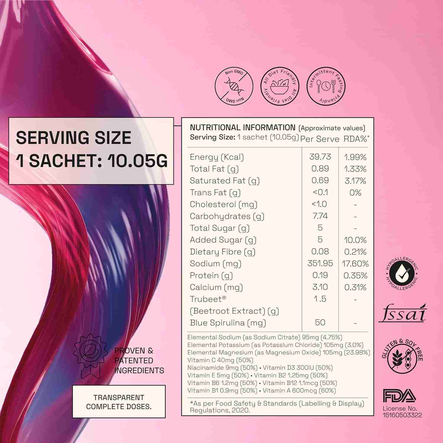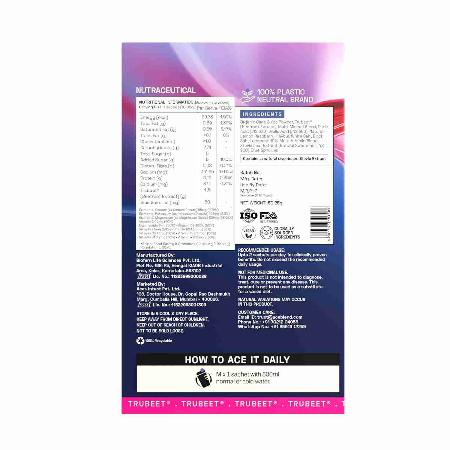 It contains key ingredients such as TruBeet®, essential electrolytes and minerals, Blue Spirulina, organic cane juice, and natural stevia.