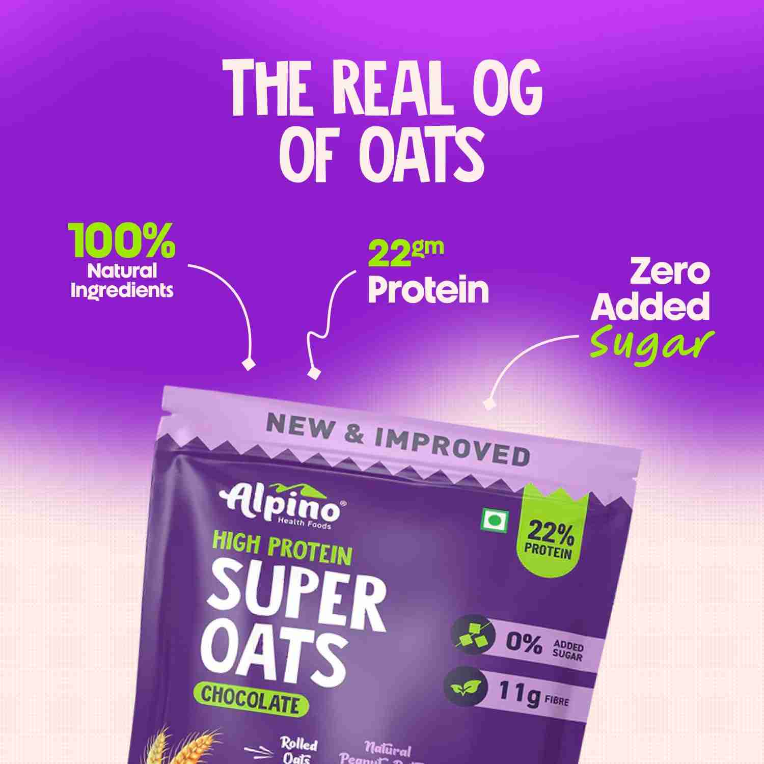 ALPINO Super Oats are designed to be a complete food, offering a balanced source of carbohydrates, protein, and healthy fats. Rolled oats are packed with beta-glucan, a soluble fibre that helps reduce cholesterol and blood sugar levels, promoting heart health. They also contain powerful antioxidants, which may help lower blood pressure.