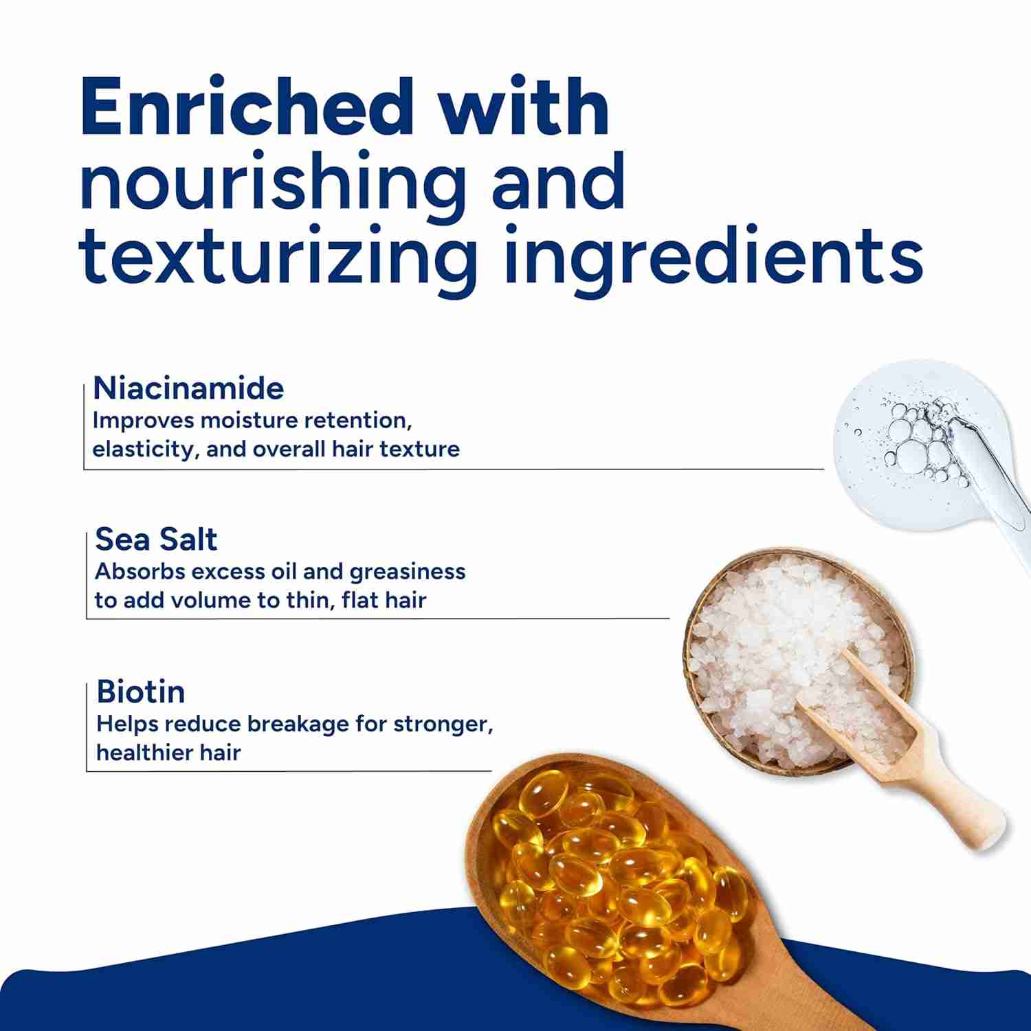 The spray infuses Sea Salt, Biotin, and Niacinamide to strengthen strands, add instant volume, and hydrate your hair.