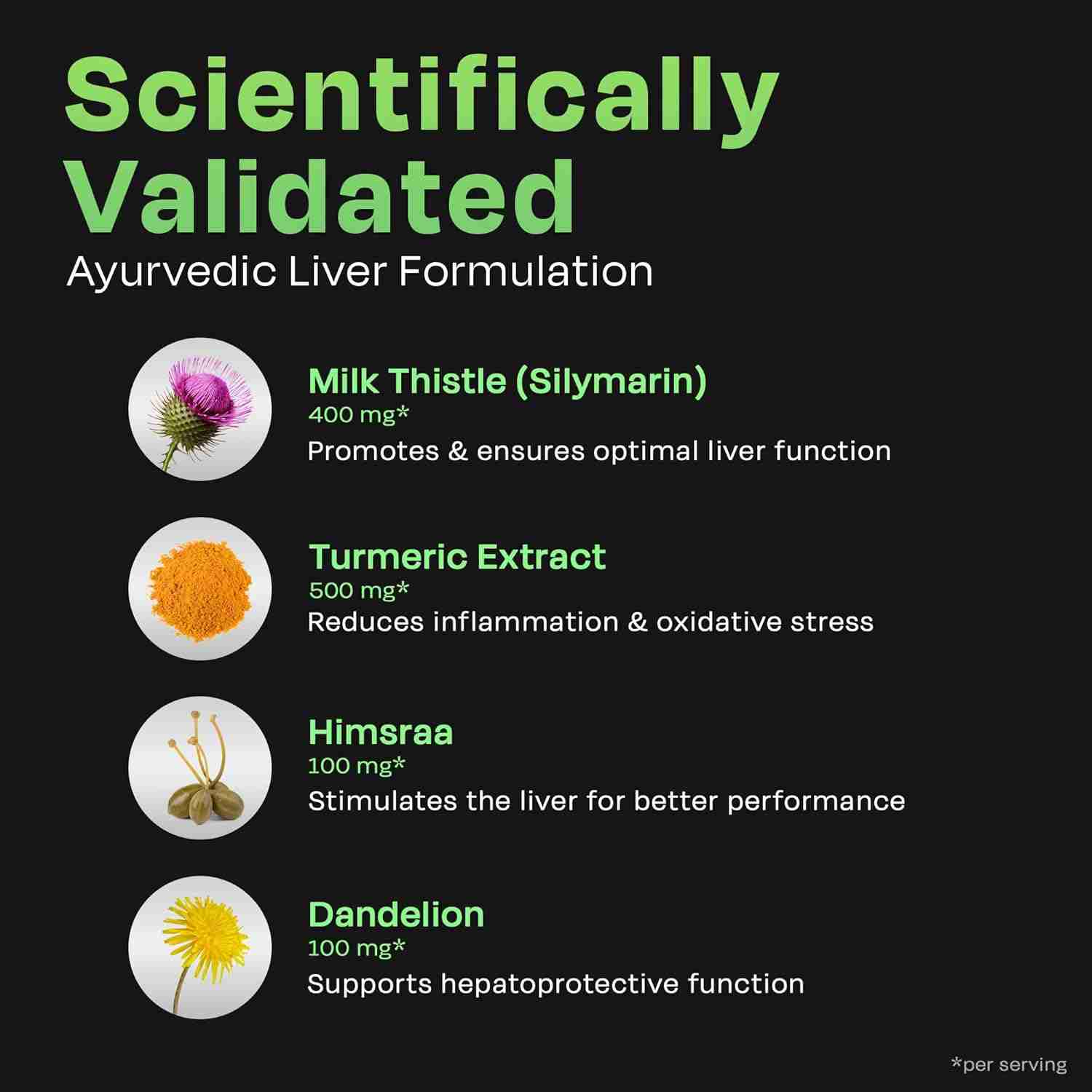 • Key Features : 1. PURE AYURVEDA - Turmeric, Himsraa, Mulethi (Licorice), Milk Thistle, Dandelion and Kokum 2. CLEAN LABEL - No Colour, No Paraben, No Maltodextrin, No Sucralose 3. CLINICAL EVIDENCE - Patented ingredients from the US are clinically proven to show a marked reduction in ALT, AST, Liver Stiffness, Steatosis, FAST score, IL6, and HsCRP when consumed twice daily for 90 days.