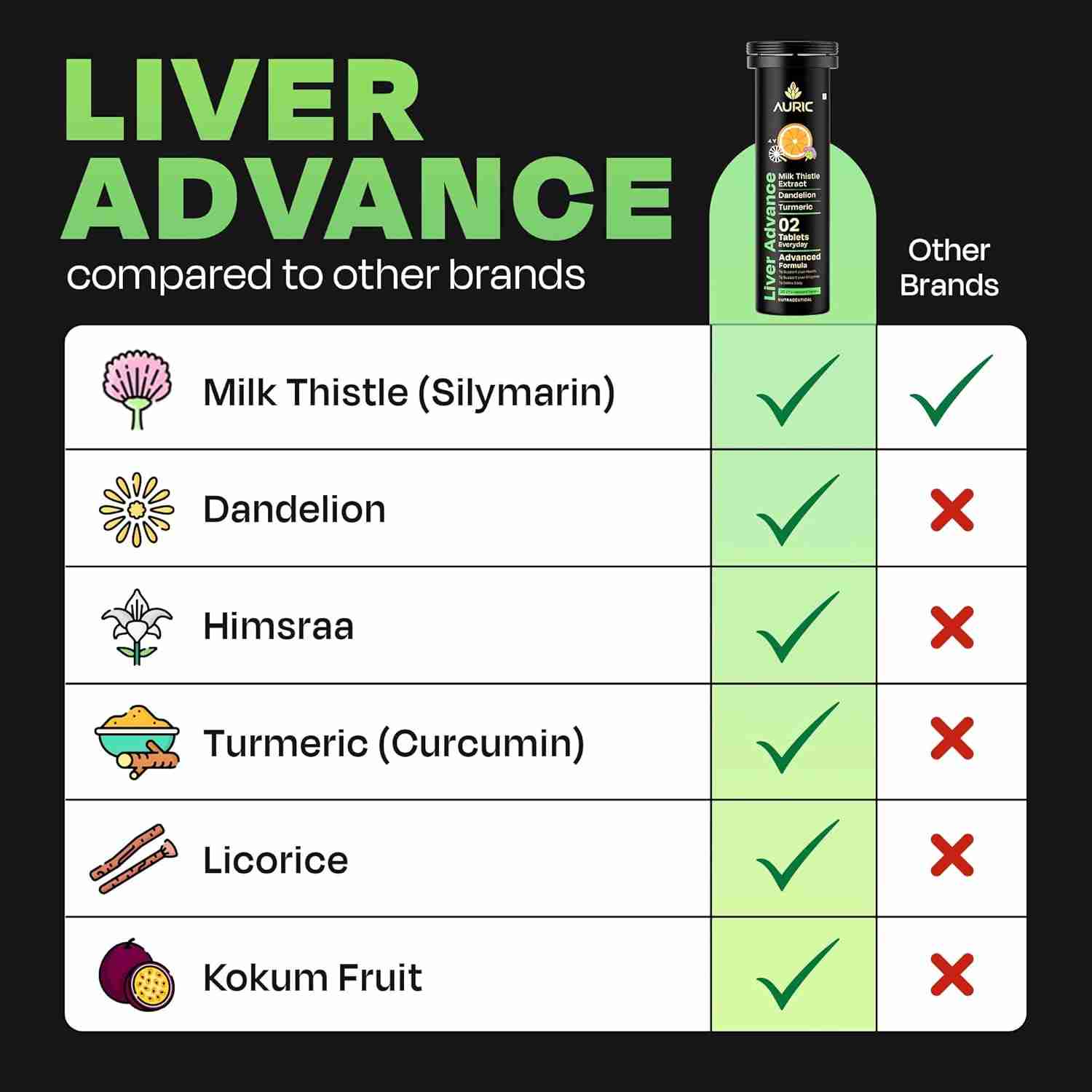 1. PURE AYURVEDA: The formulation includes Turmeric, Himsraa, Mulethi (Licorice), Milk Thistle, Dandelion, and Kokum.