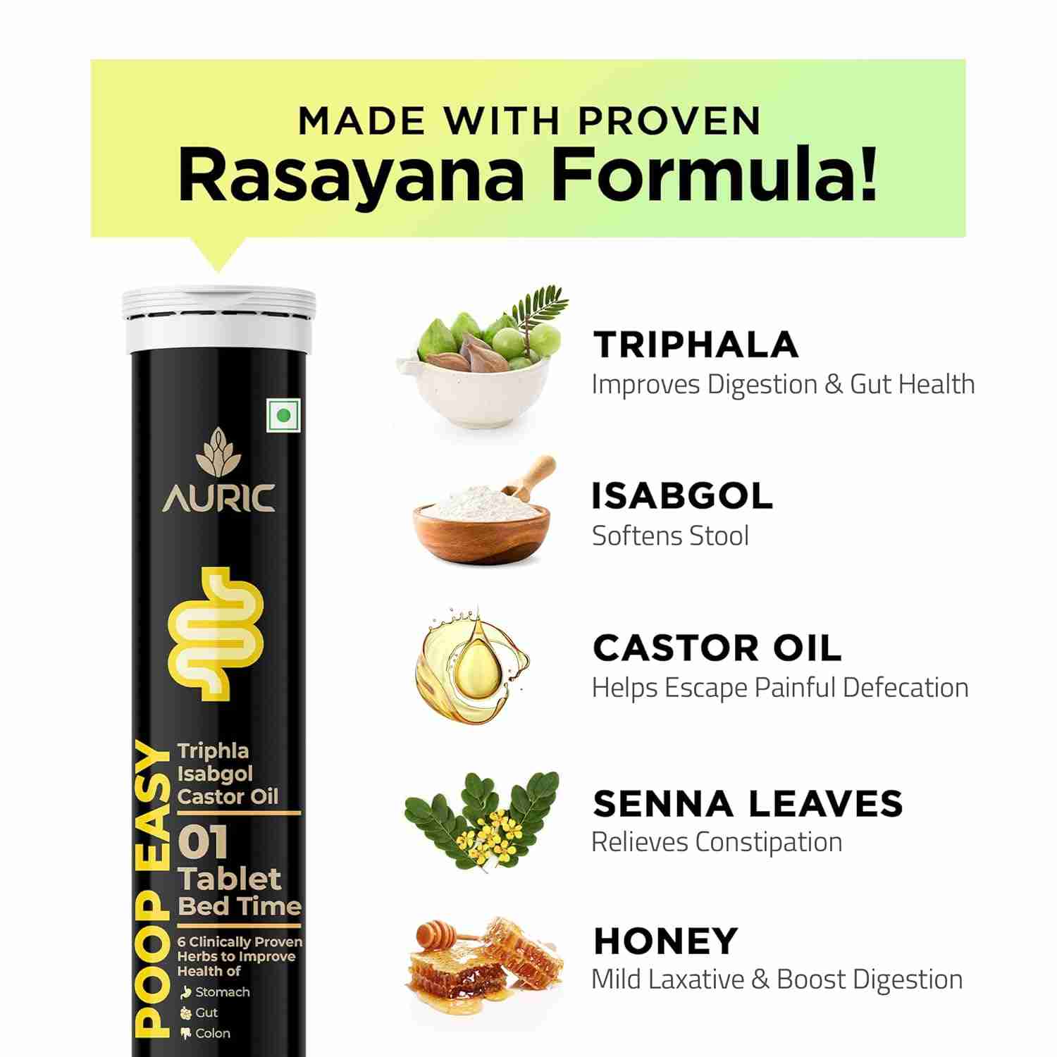 POWER OF AYURVEDA HERBS: Made with pure Rasayana formula of Triphala, Isabgol, Castor Oil, and Senna Leaves. Triphala contains Haritaki, Amlaki, and Bibhitaki which help in improving digestion and gut health. Isabgol contains both soluble and insoluble fiber making the stool soft and large triggering the bowel to contract. Castor Oil helps escape painful defecation. Senna leaves help relieve constipation.
