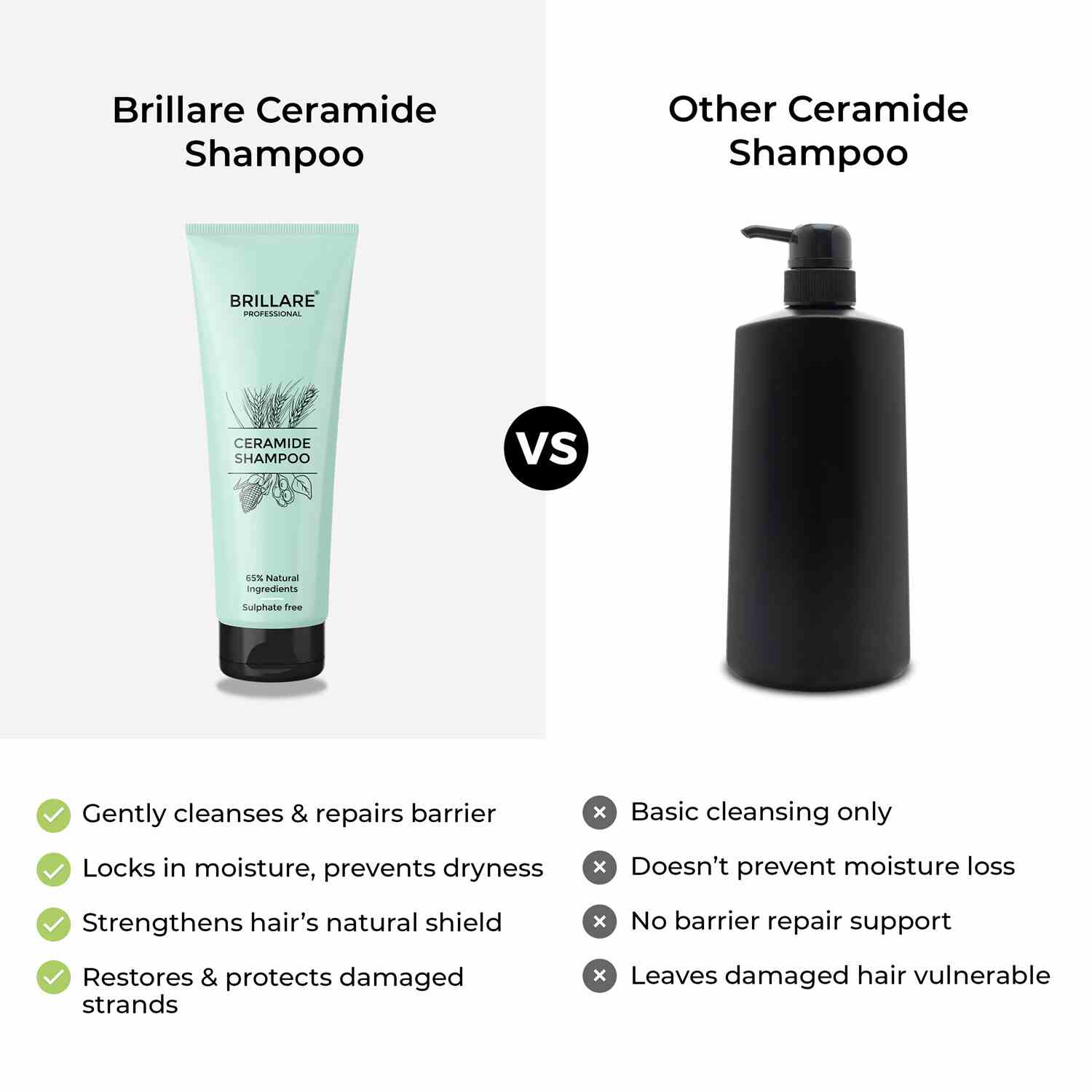 65% natural shampoo with ceramide & protein complex for dry, damaged & chemically treated hair.