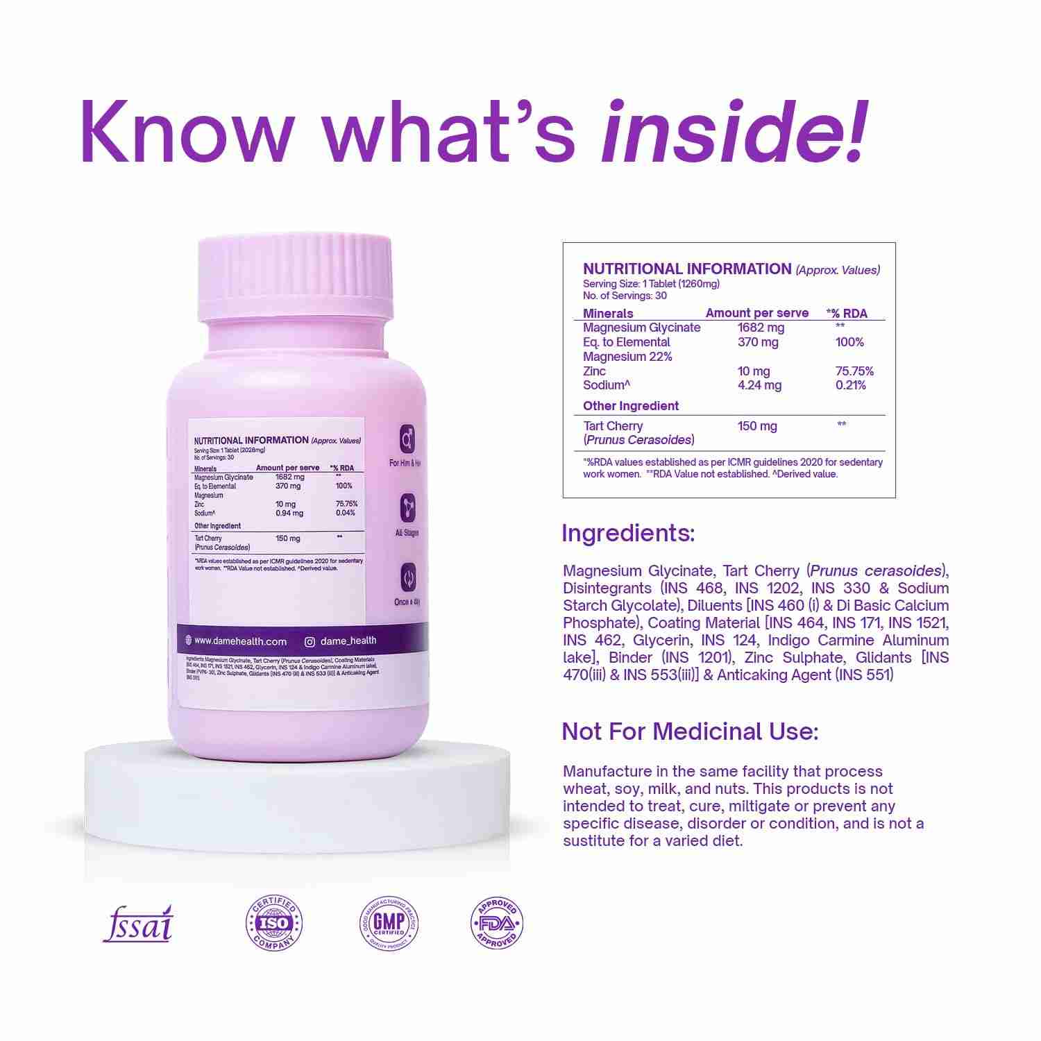 Dame Health | Magnesium & Tart Cherry Multivitamin | 30Tab