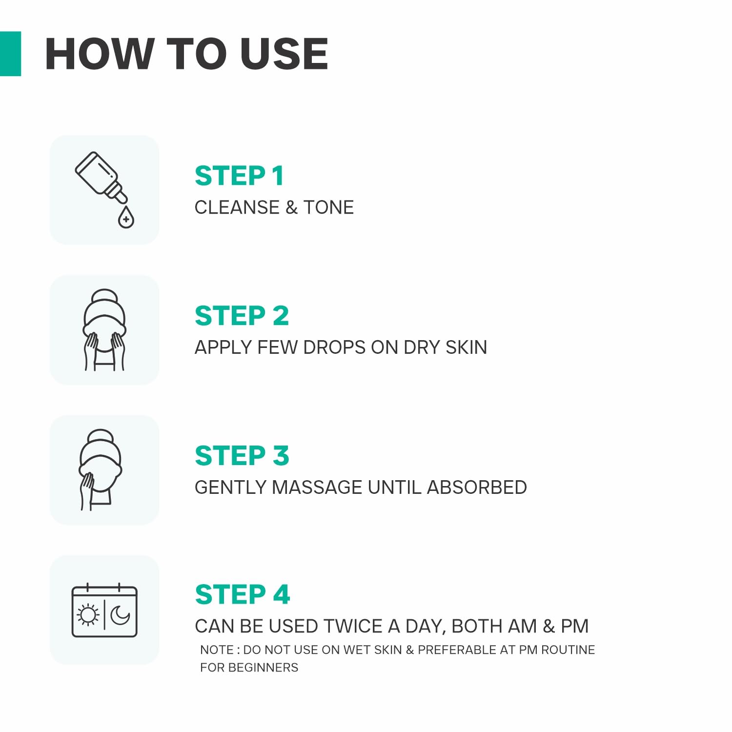 • • Helps to reduce pigmentation and dark spots • Helps to cleanse build-ups on the skin and control sebum production • Helps to increase the production of collagen peptides • Helps to reduce overall oxidative stress of skin to improve skin complexion • Helps to ease skin inflammation