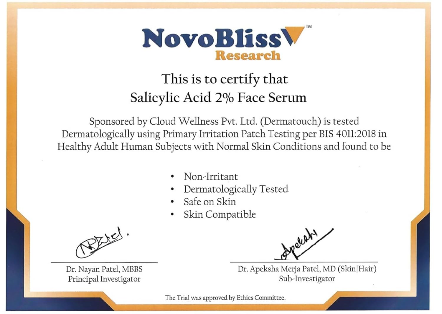 • Key Features : • TREATS ACNE: The dermatologically tested and clinically proven formulation reduces the recurrence of acne and fades the acne marks. • REDUCES SEBUM PRODUCTION: The serum is infused with ingredients that reduce and balance the sebum production on skin to prevent blackheads & whiteheads from occurring. • GENTLE EXFOLIATION: The key actives used in this serum help to gently exfoliate dark & dead skin cells for a clean and clear skin. • IMPROVED SKIN TEXTURE: This serum helps to unclog and refine pores to reduce the risk of acne formation and reduces melanin synthesis for brighter skin complexion. • SUITABLE FOR: Dermatouch Salicylic Acid 2% Sebustop 2% Face Serum is suitable for both men and women and for all the skin types, primarily for Acne-prone & Oily skin.