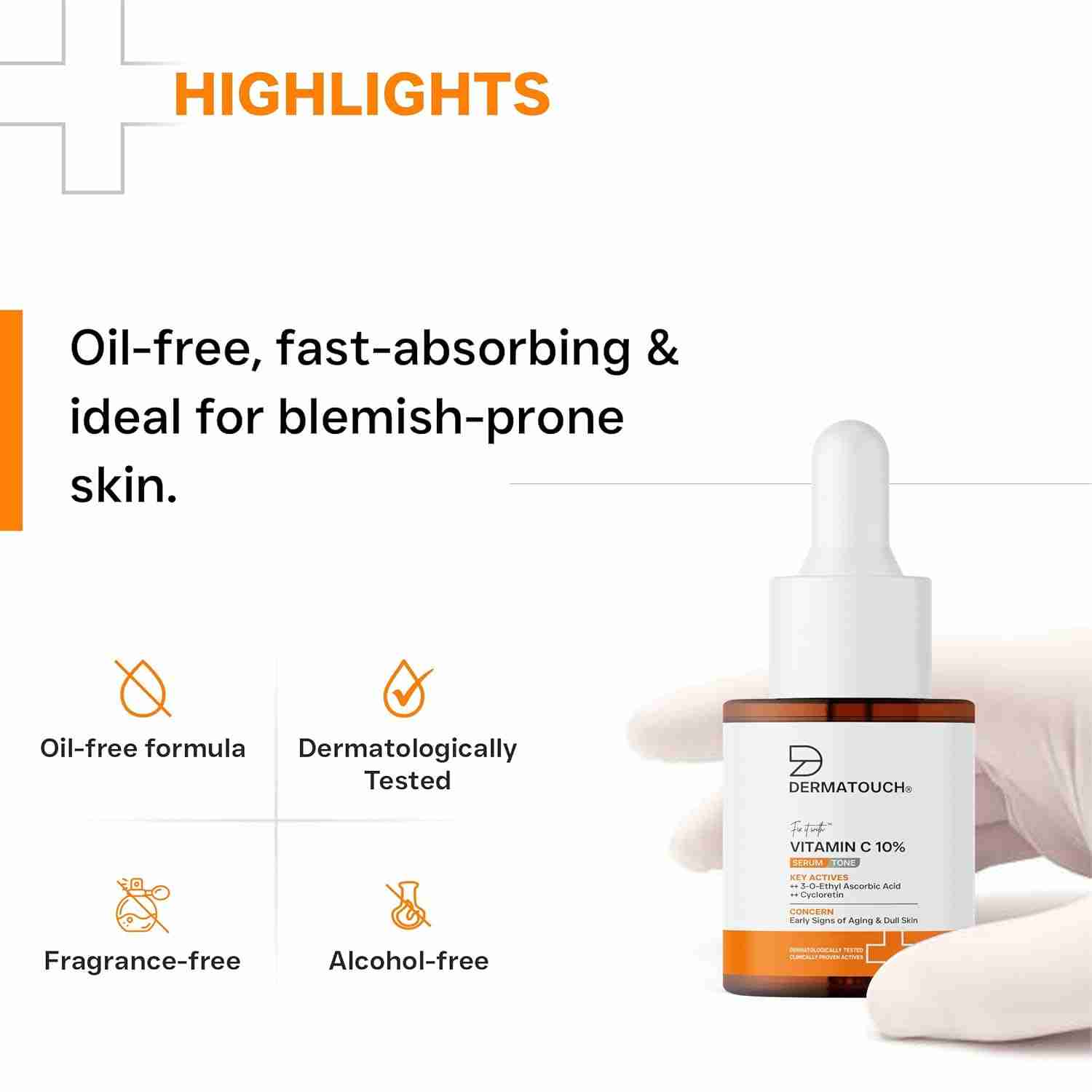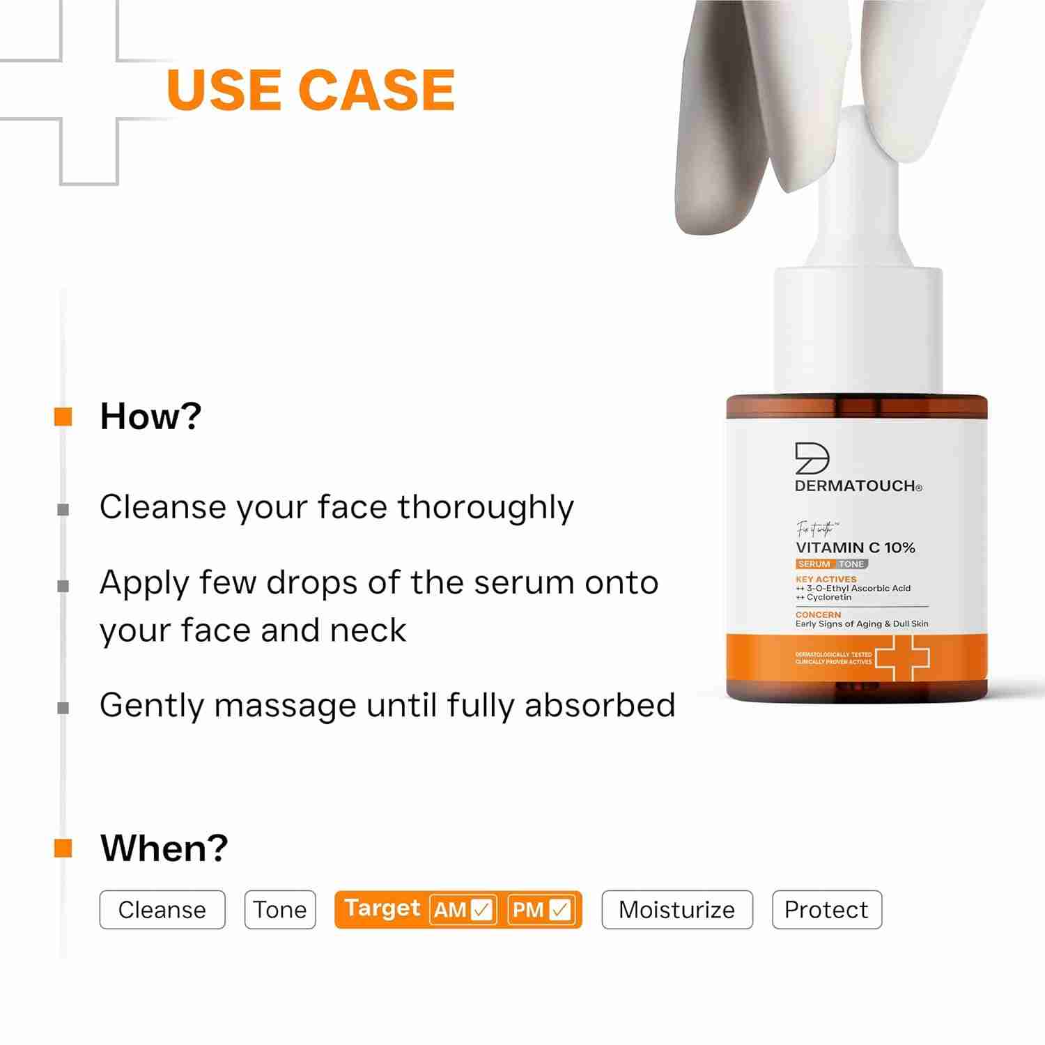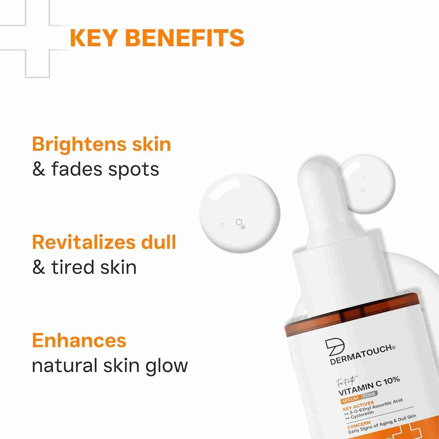 Dermatouch Vitamin C 10% Serum with Cycloretin is a powerful anti-aging formula designed to brighten, firm, and rejuvenate the skin. The advanced Vitamin C complex enhances radiance and reduces pigmentation, while Cycloretin boosts collagen, improving firmness and elasticity. It combats dullness, fine lines, and environmental damage to reveal smoother, even-toned, and youthful-looking skin. Suitable for all skin types.