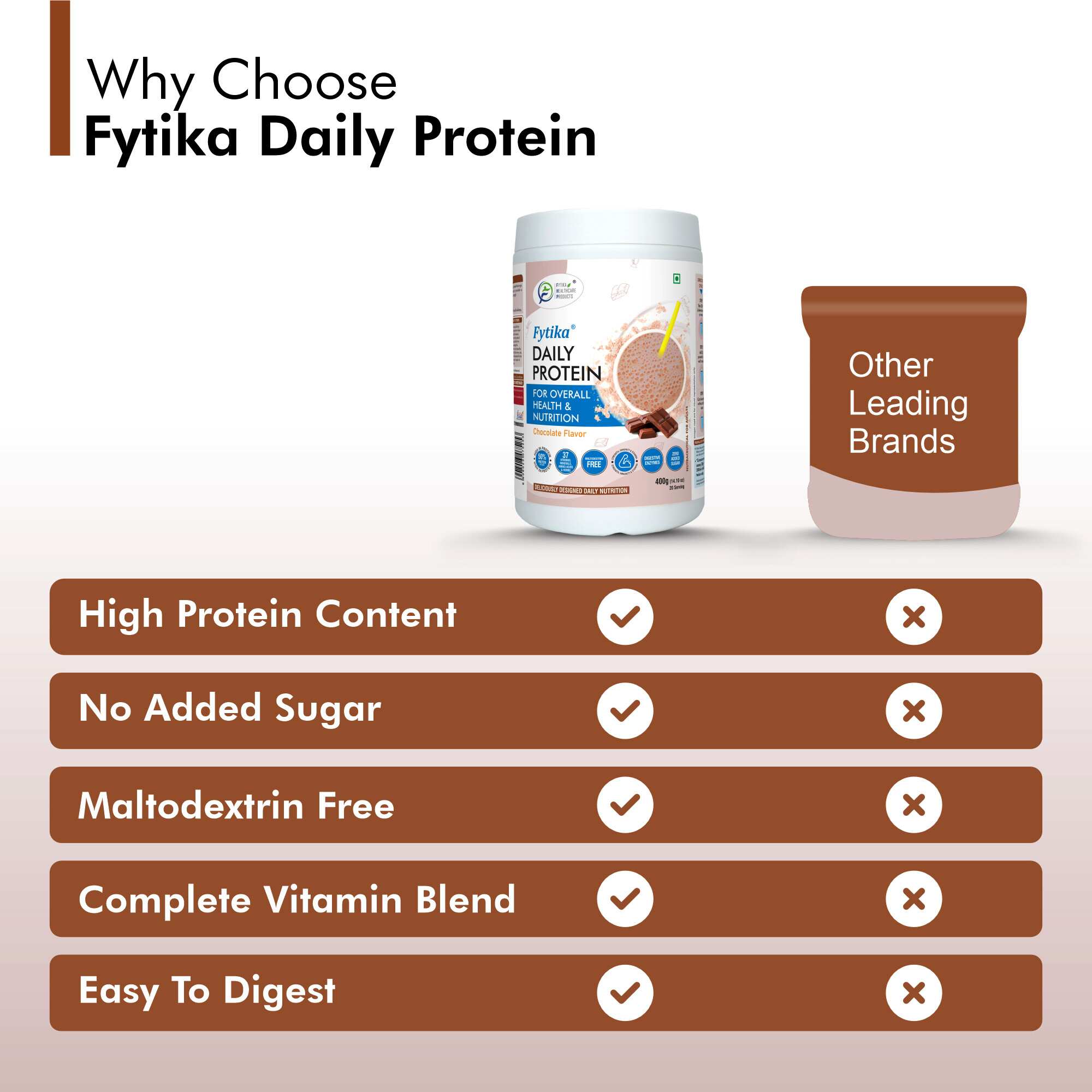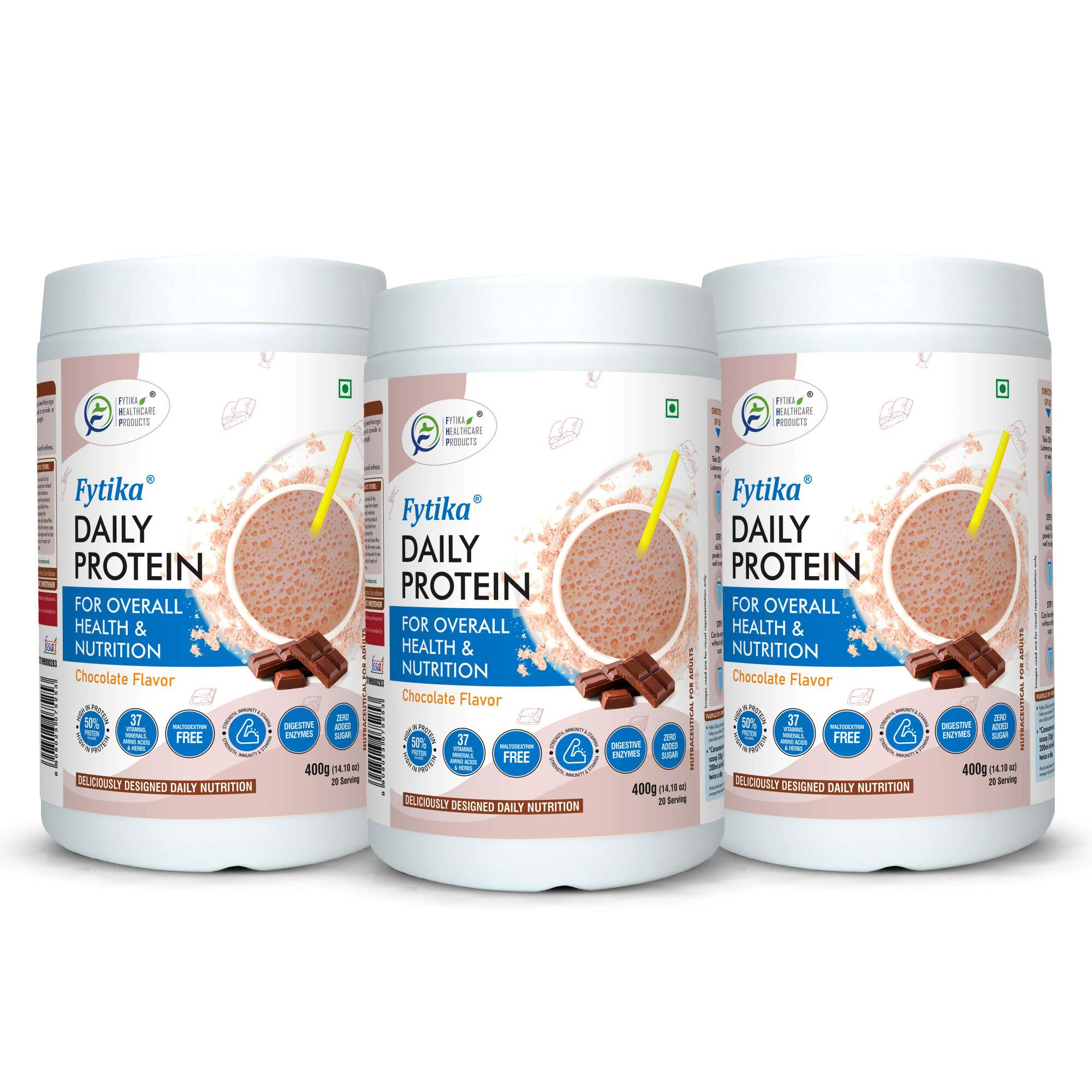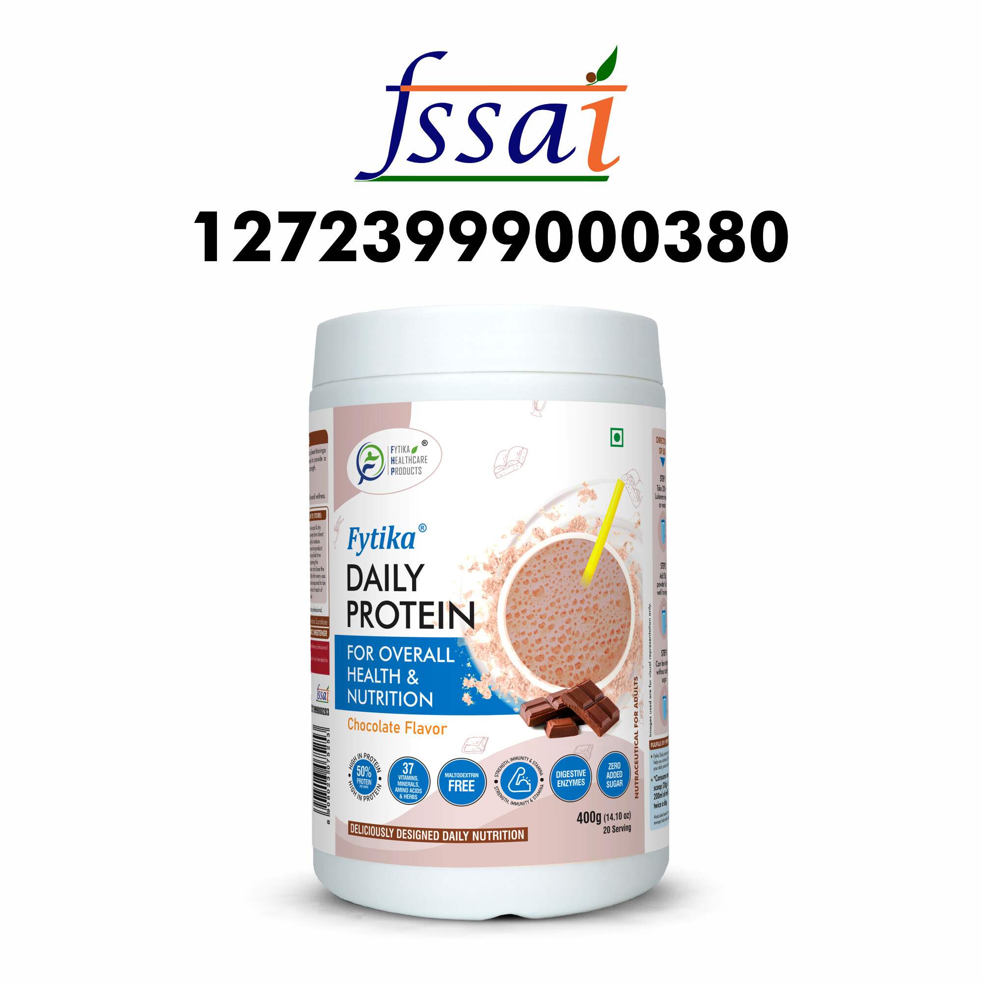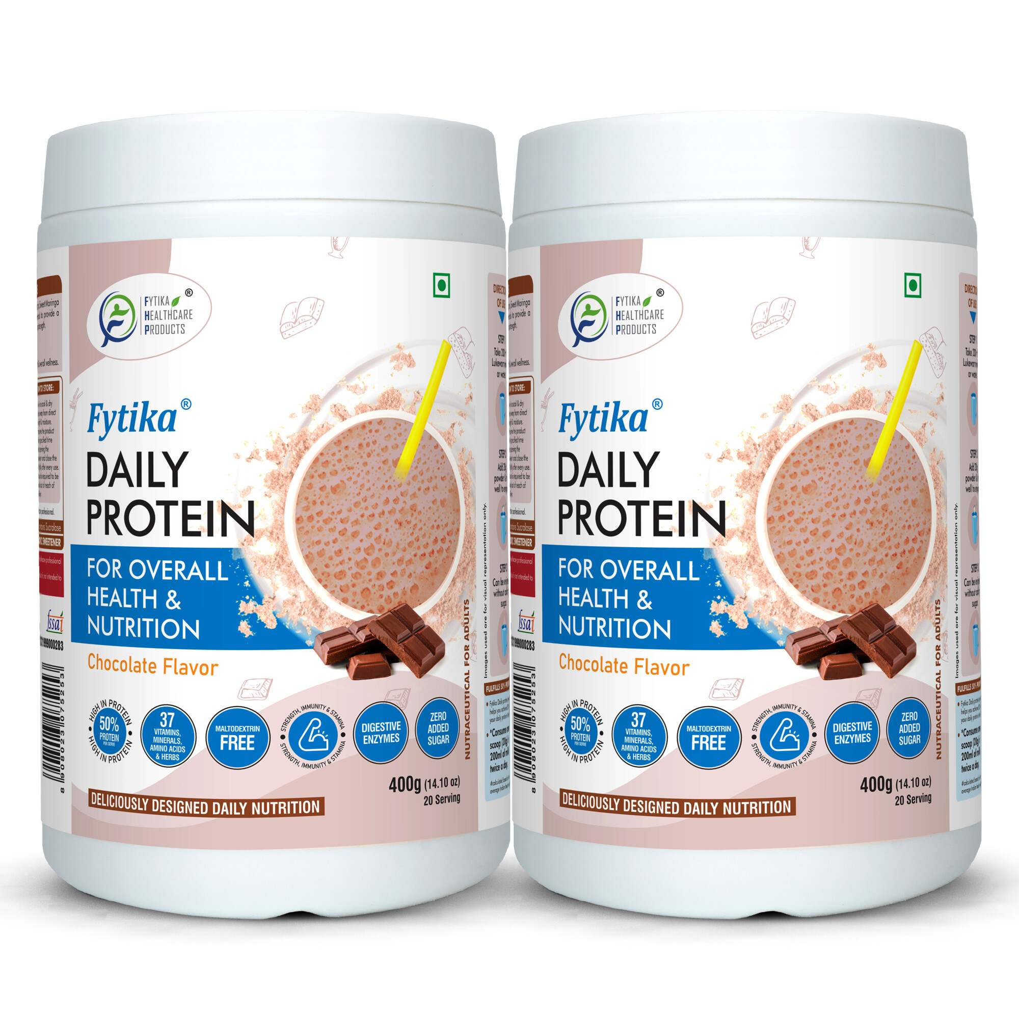 Fytika Daily Protein (Chocolate Flavor) is a premium all-in-one nutrition formula designed to support daily wellness, energy, and strength. It combines high-quality protein with 37 essential vitamins, minerals, amino acids, and Ayurvedic herbs like Ashwagandha, Sweet Moringa Powder, and Gokshura (Tribulus Terrestris). Enhanced with a blend of digestive enzymes for better nutrient absorption, this 100% natural formula helps combat lethargy, enhance immunity, increase energy levels, promote muscle strength, and support healthy weight management. With its rich chocolate flavor, Fytika Daily Protein makes staying fit, nourished, and energized a truly enjoyable daily routine.