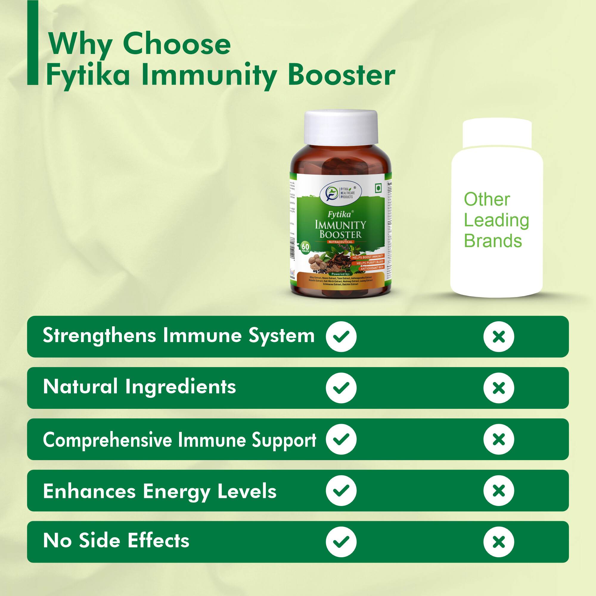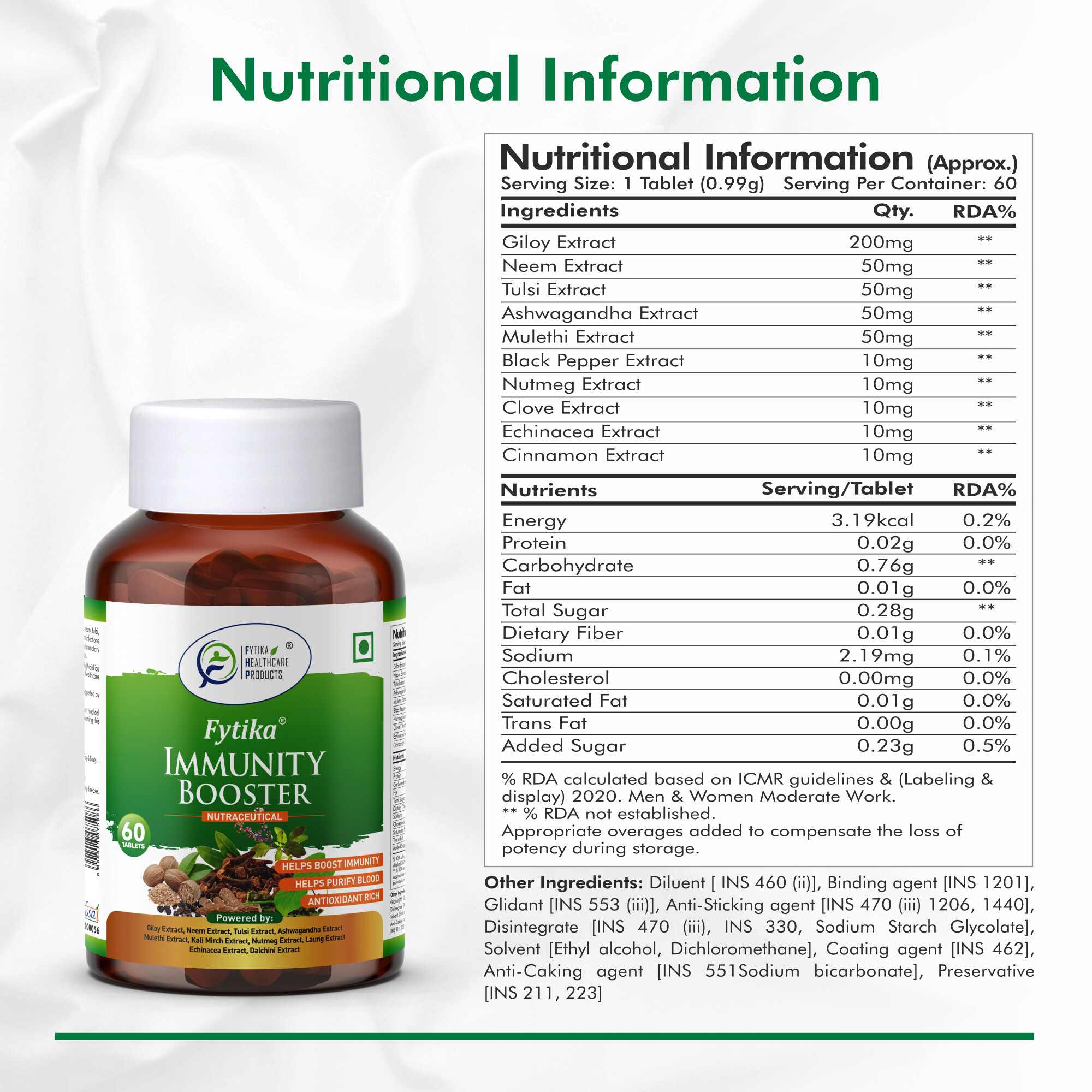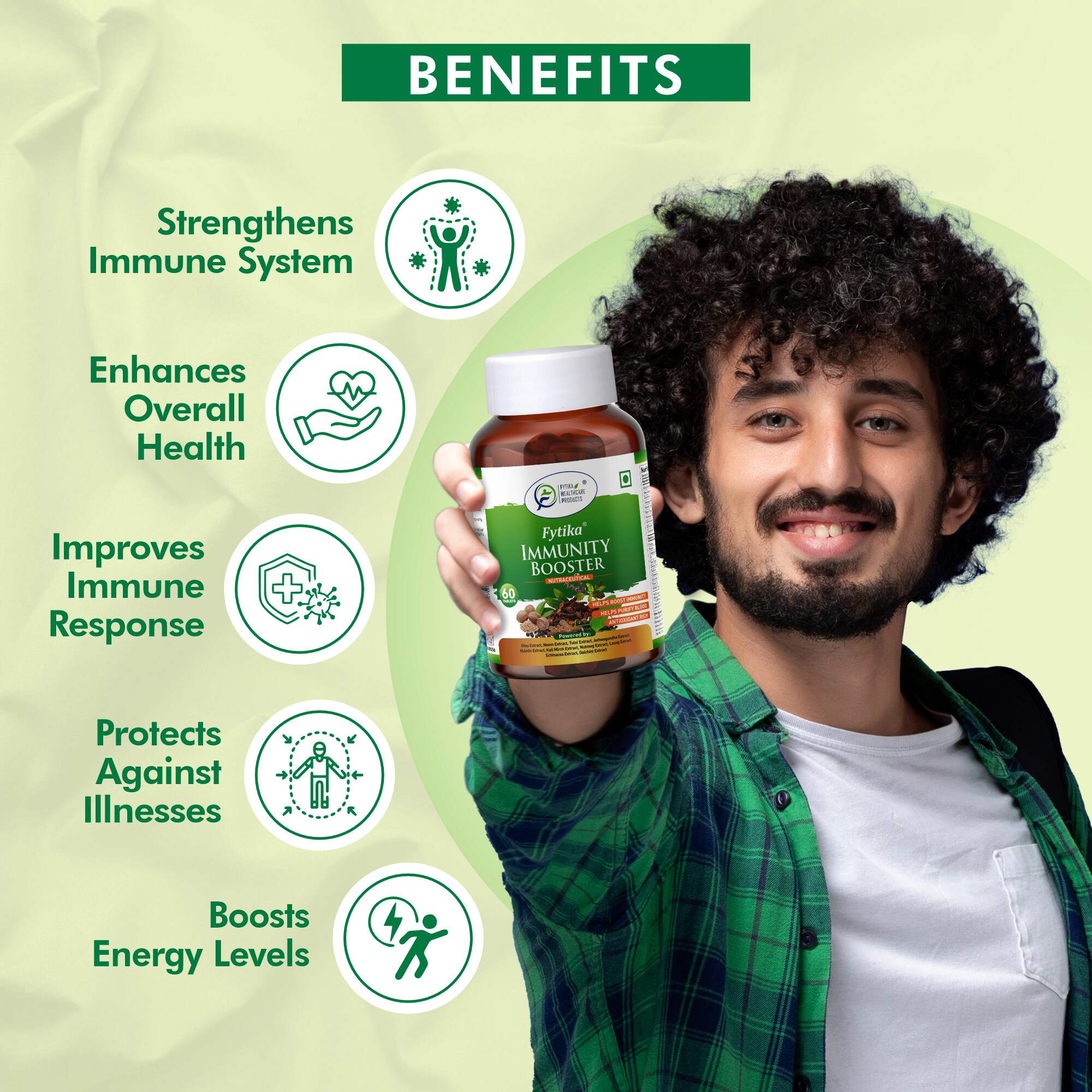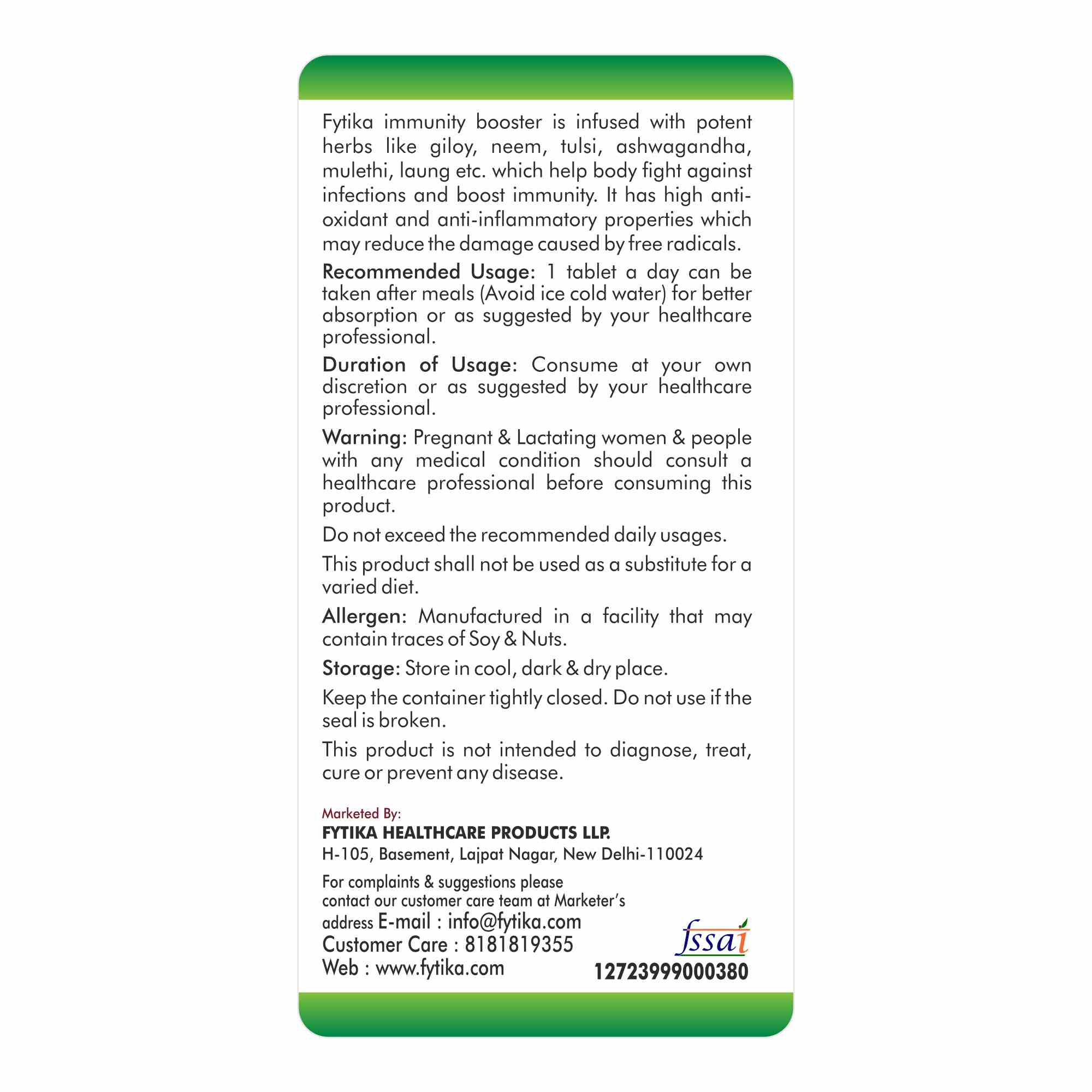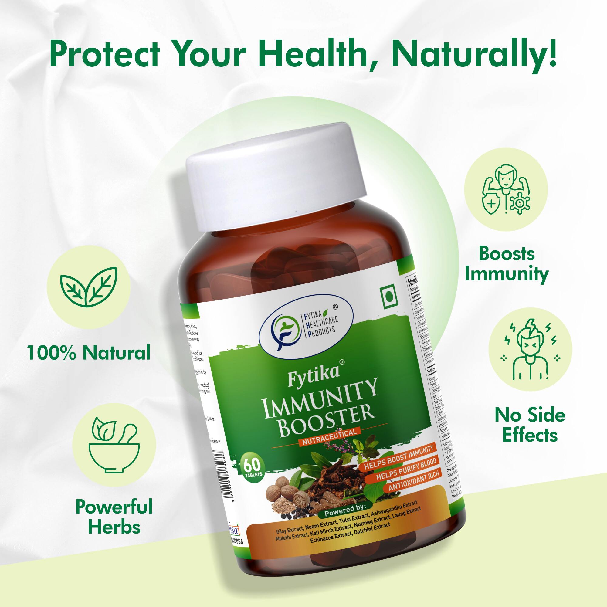 Fytika Immunity Booster is a premium health supplement formulated to support your body’s natural defenses. Enriched with a powerful combination of Ayurvedic herbs and essential vitamins and minerals, it helps strengthen immunity, improve energy levels, and protect against seasonal illnesses and everyday stressors. Regular use supports overall wellness by enhancing the body’s ability to fight infections, maintain optimal gut health, and promote vitality. Safe, natural, and effective, Fytika Immunity Booster is your daily ally for a stronger, healthier, and more resilient immune system.