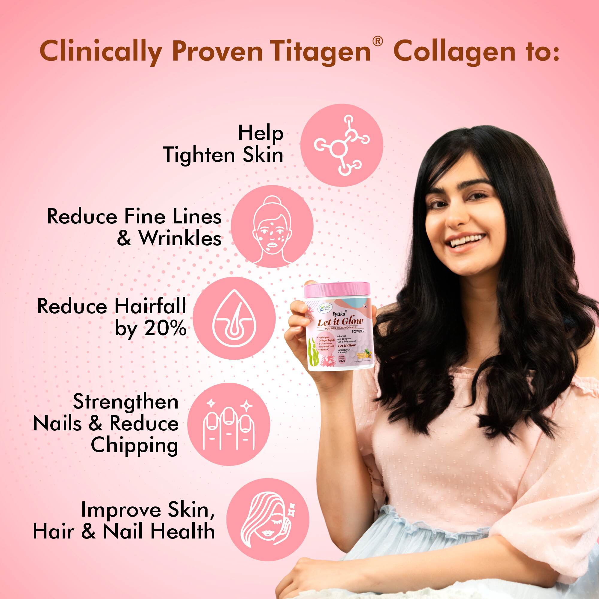 Collagen improves skin hydration and elasticity. It can also help reduce inflammation and redness, leading to clearer and more youthful-looking skin.