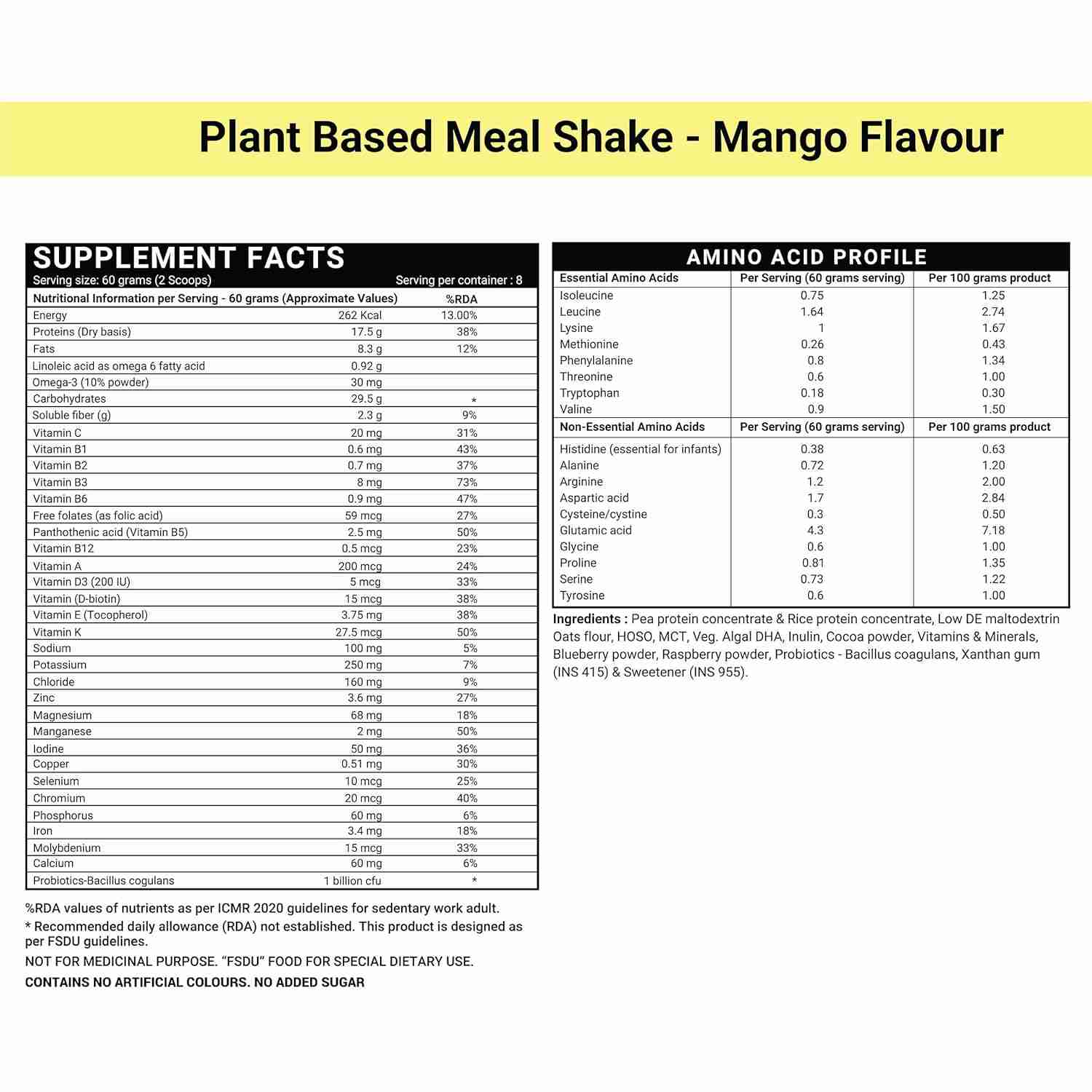 Contains 17.5 grams of plant-based protein from Pea and Rice, with all essential amino acids.