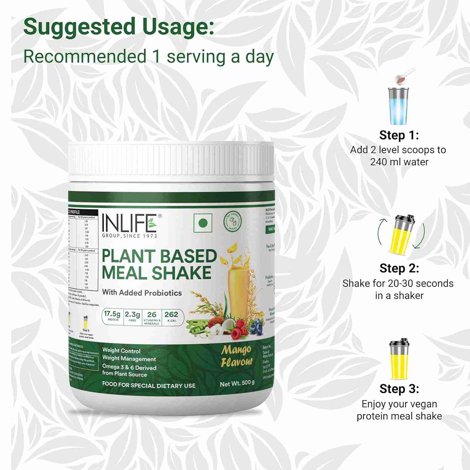 Mix 2 level scoops with 240ml of water, shake for 20–30 seconds, and enjoy. Manufactured in facilities certified by ISO 22000:2005,GMP guidelines and aligning with industry-defined standards for quality and safety. Convinient packaging of 500grams powder in a bottle, designed for daily use.