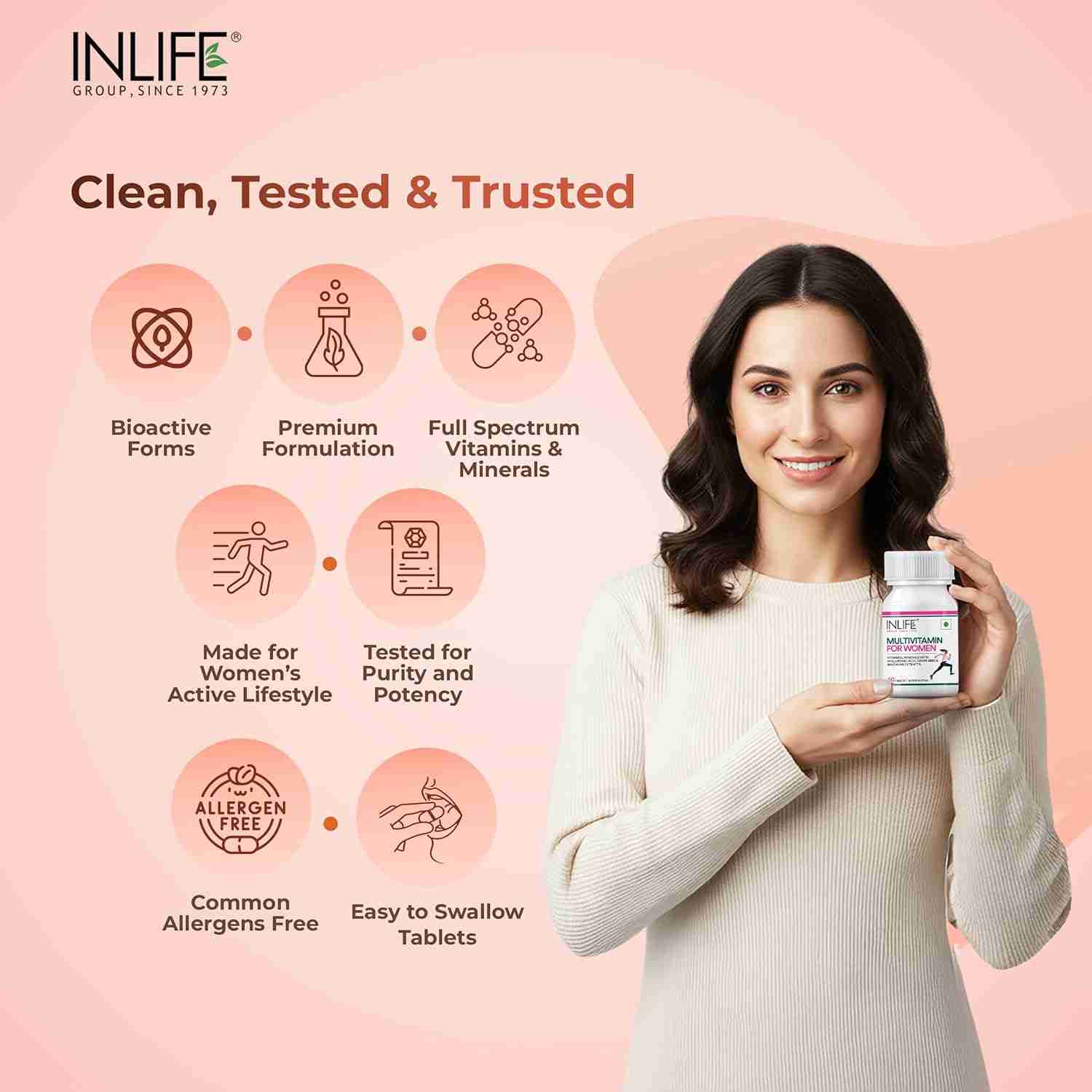 Inlife | Women's Multivitamin Tablets | 60 Tablets | Enriched with Zinc, Vitamin C, Vitamin D, and Essential Multiminerals | Supports Immunity and Energy Levels