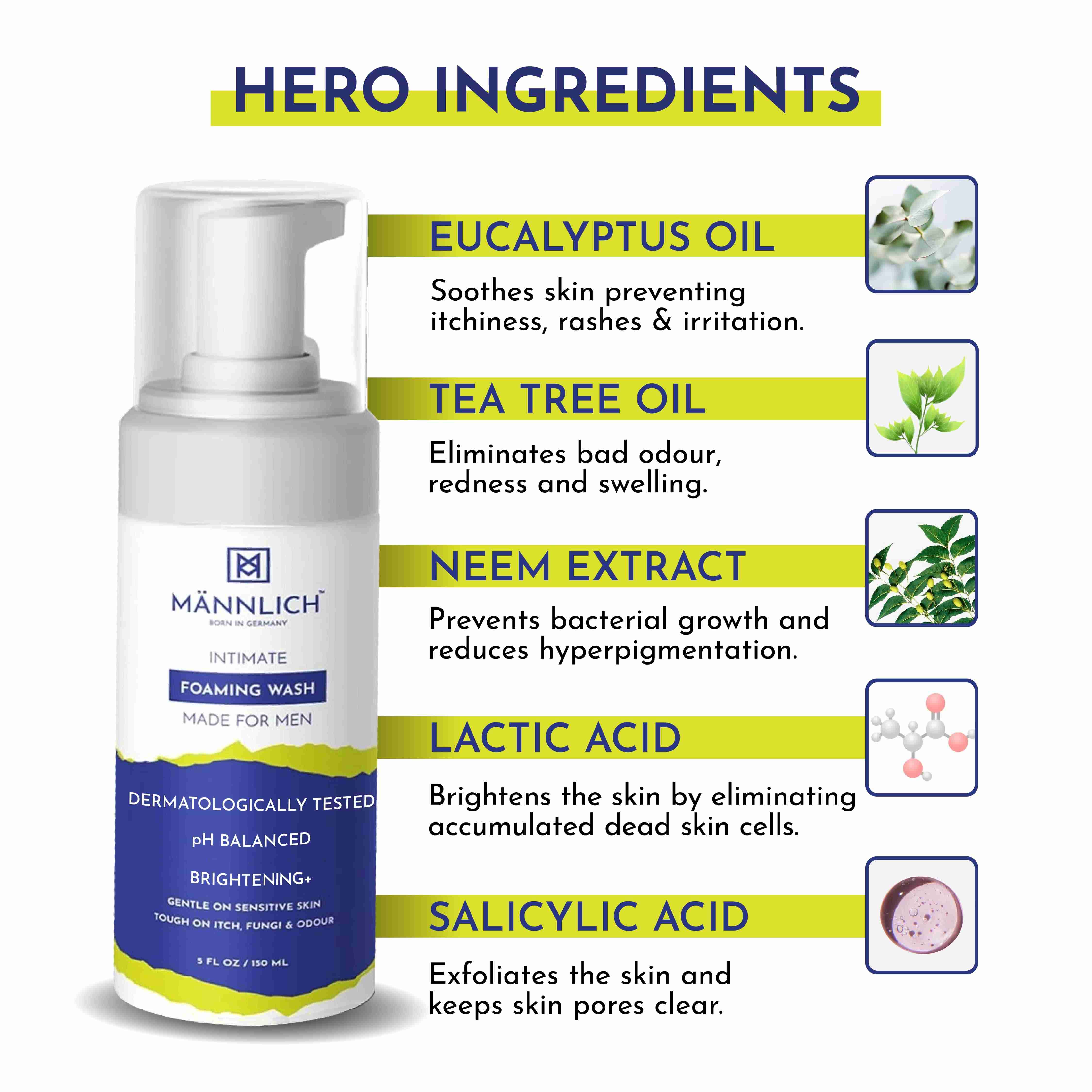 Exfoliates the skin and keeps pores clear, helping to maintain smooth and blemish-free intimate areas.