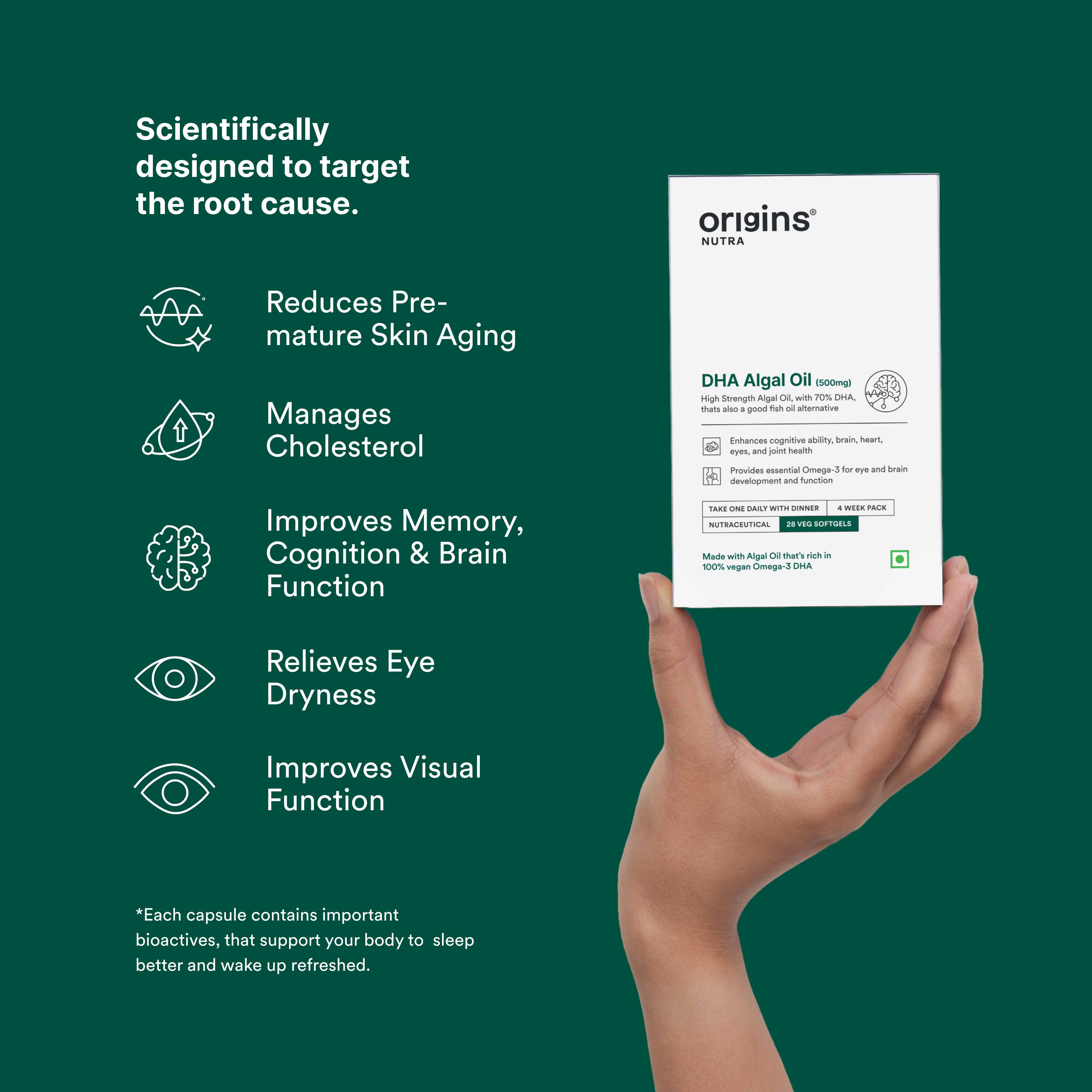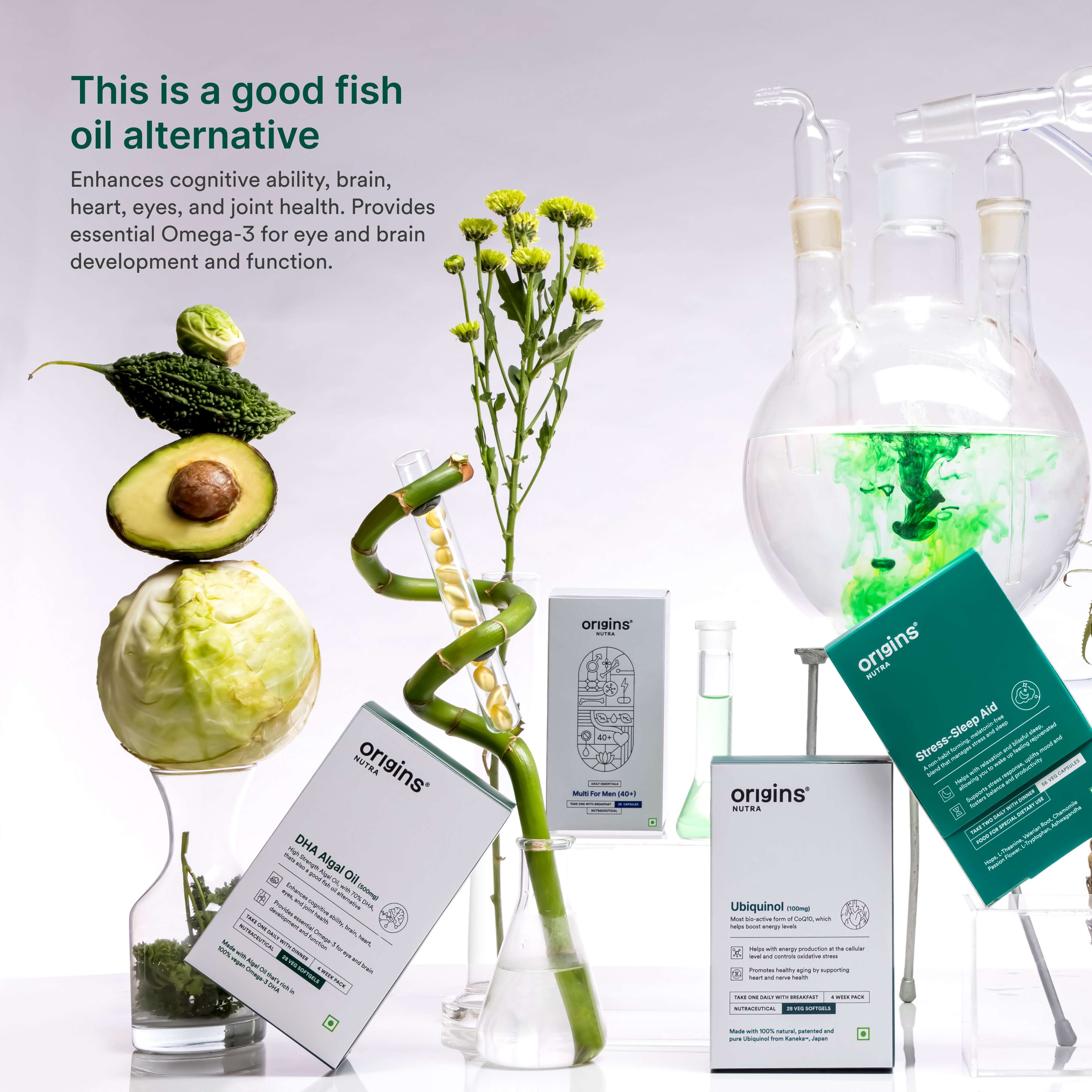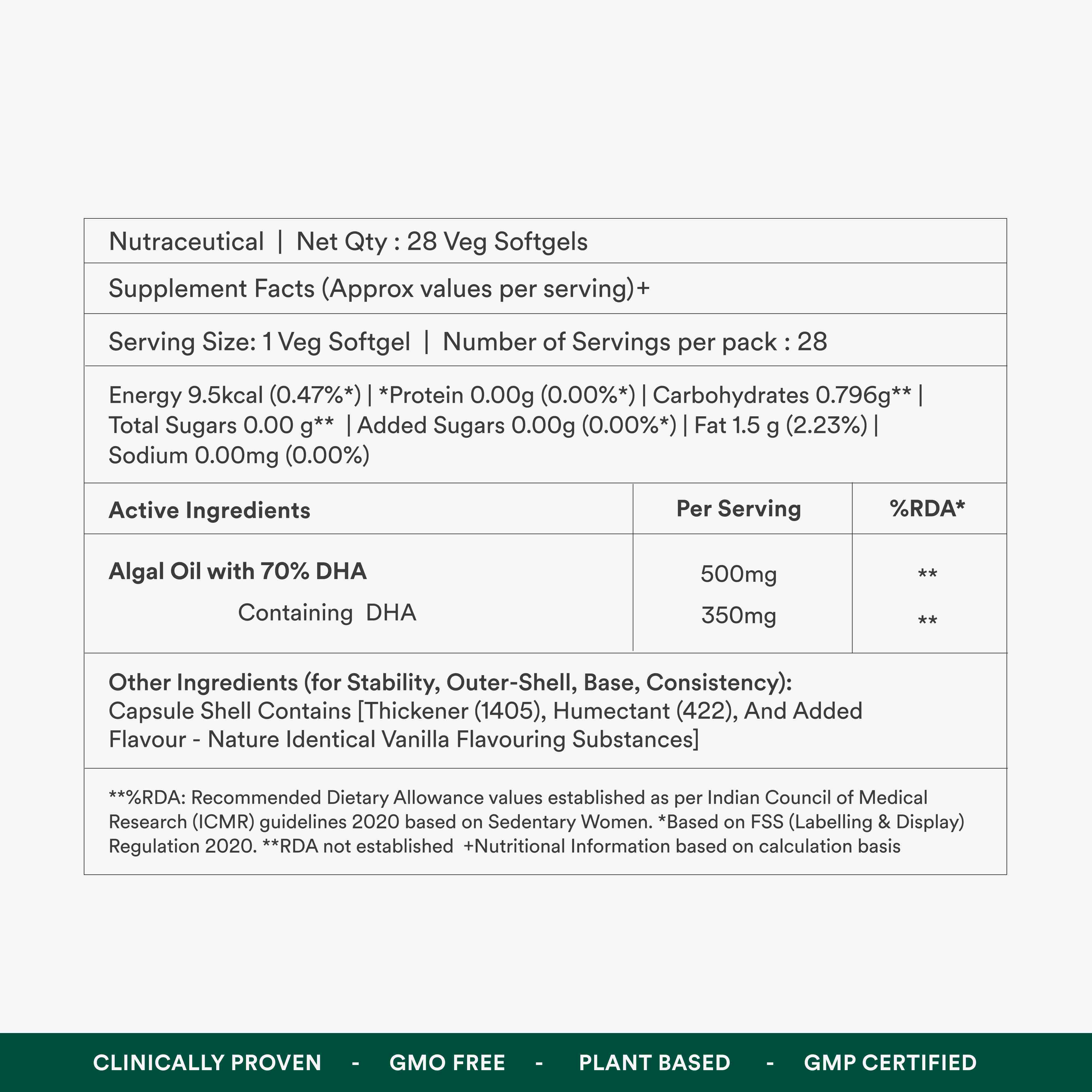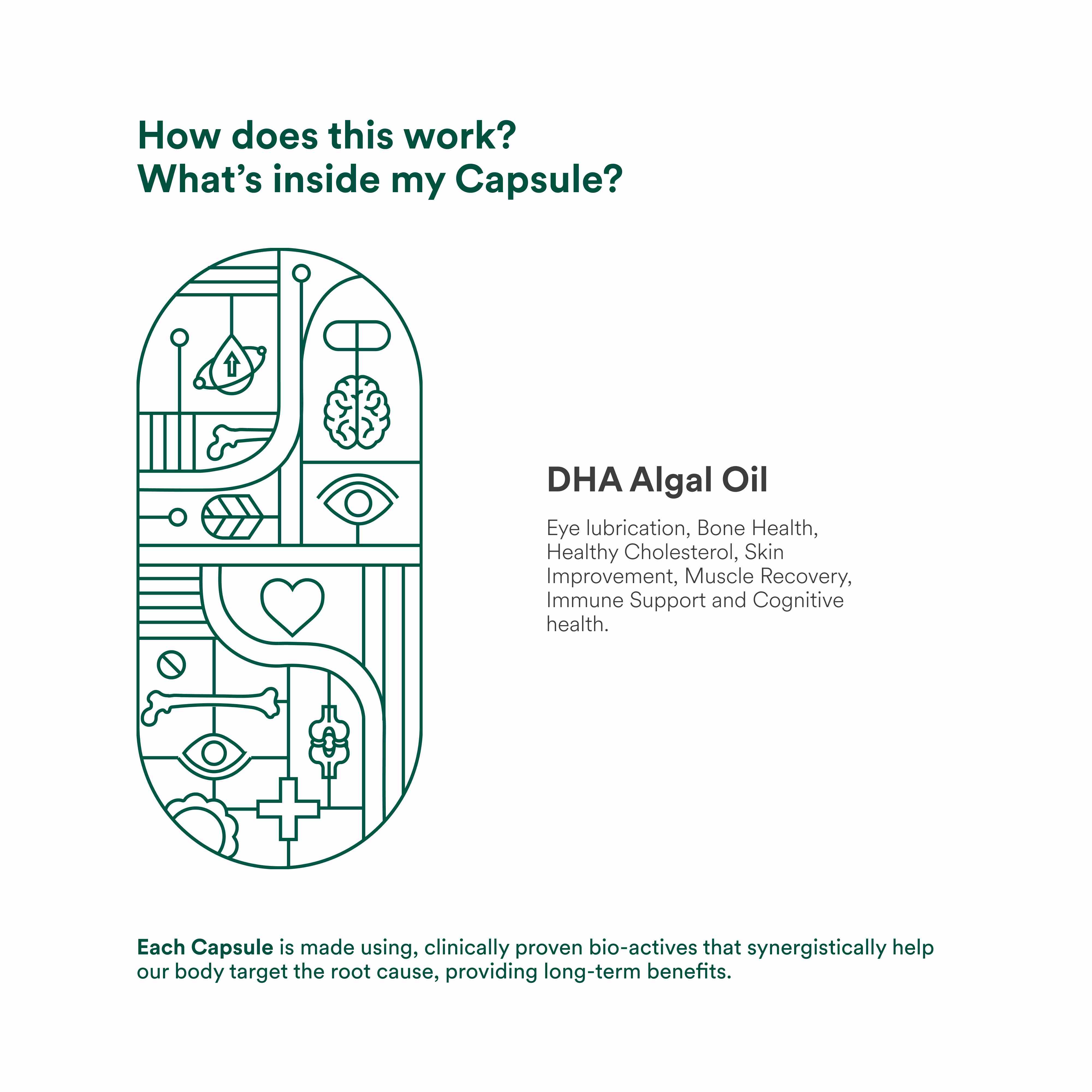 DHA Algal Oil is a high-strength, pure & sustainable supplement for health conscious individuals. This vegan friendly Omega-3 DHA source is derived from microalgae, ensuring a sustainable alternative to fish-based oils. With a high concentration of DHA, it supports brain, heart, & eye health. Its unique extraction promotes optimal potency & bioavailability, allowing efficient absorption of these vital nutrients. It addresses root causes of health issues, improving heart health and eye health.