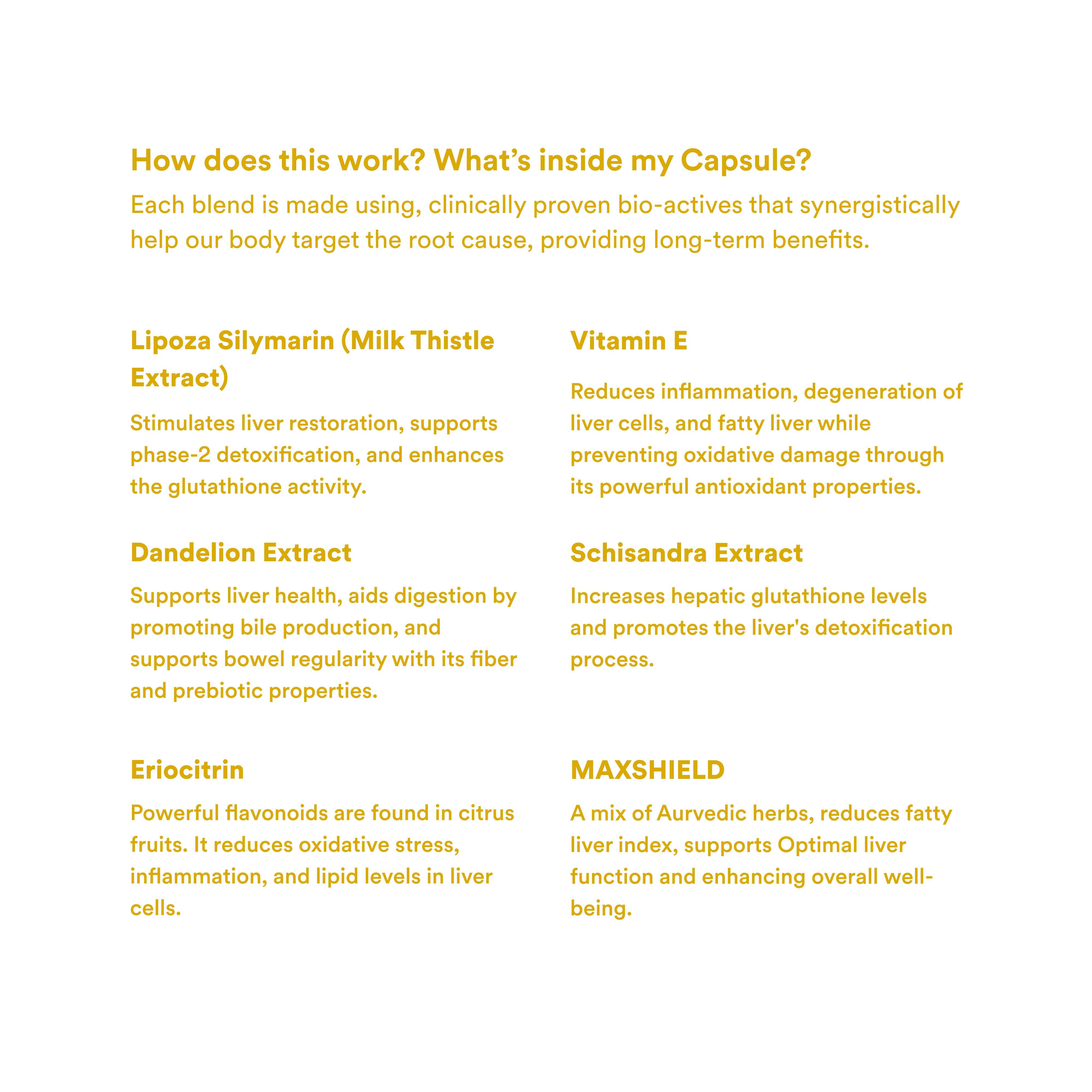 • Key Features : Supports liver function, manages fatty liver, & promotes liver health while aiding detoxification.