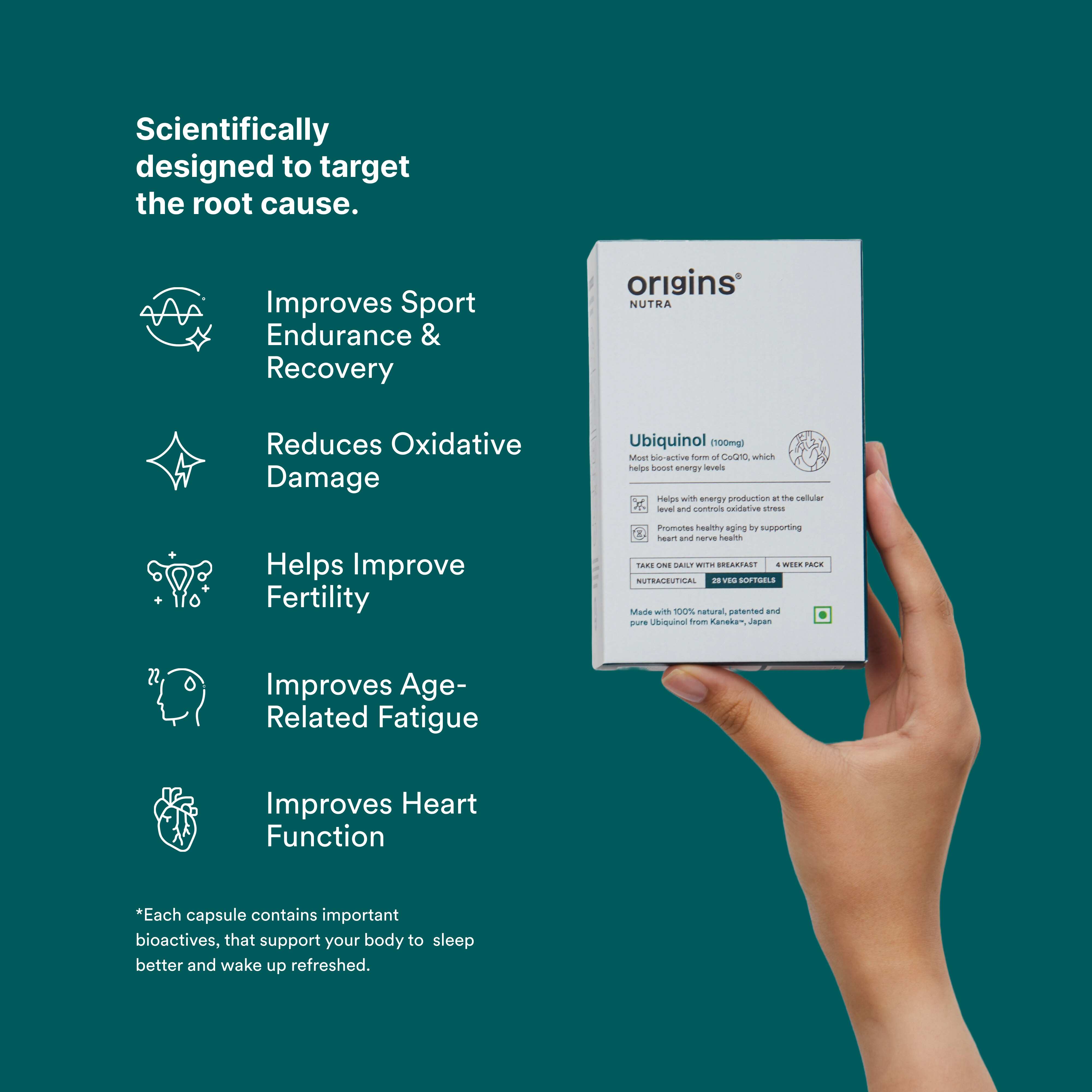 Origins Nutra | Ubiquinol (100mg) | For Men & Women | 28 Soft Gels