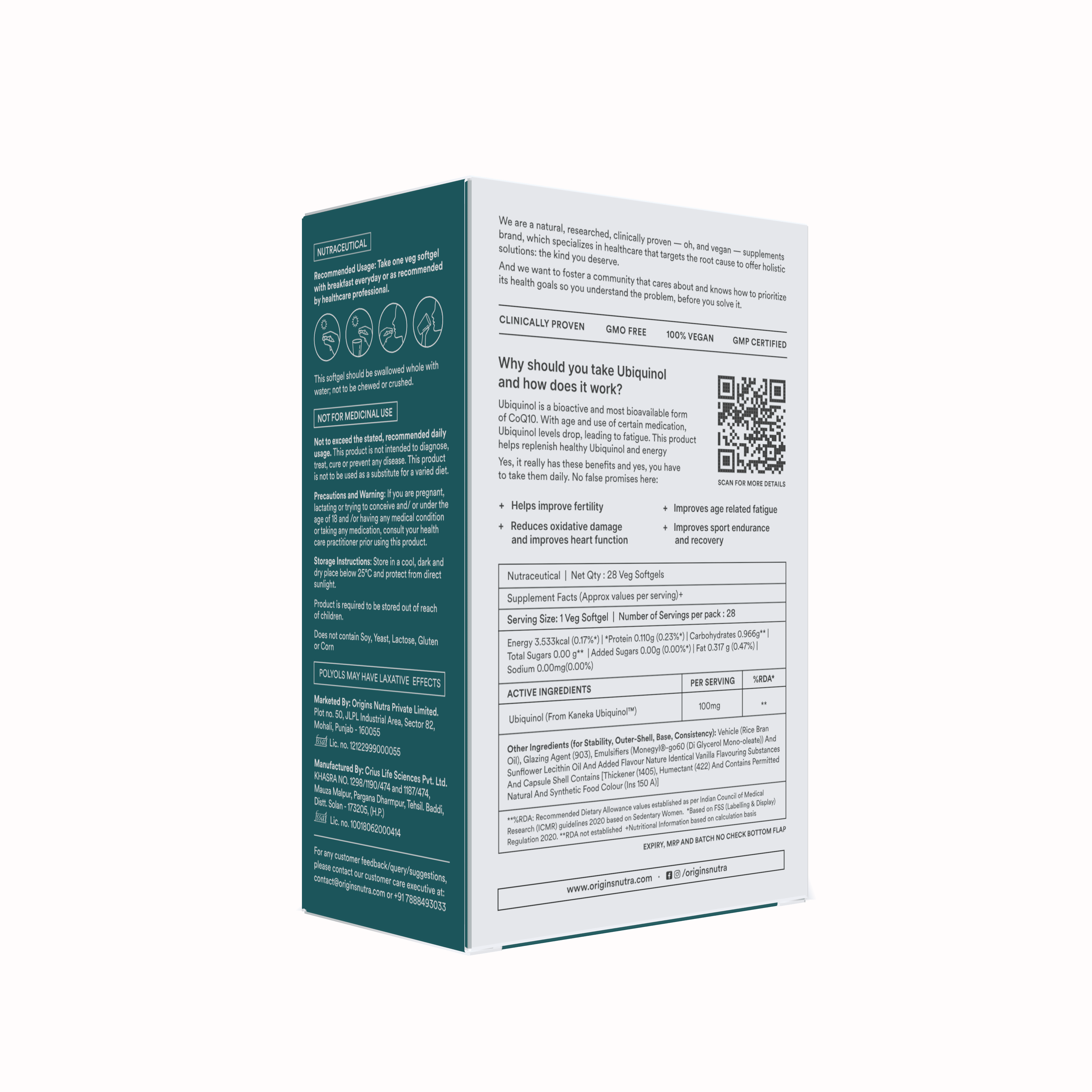 Home / Origins Nutra | Ubiquinol (100mg) | For Men & Women | 28 Soft Gels