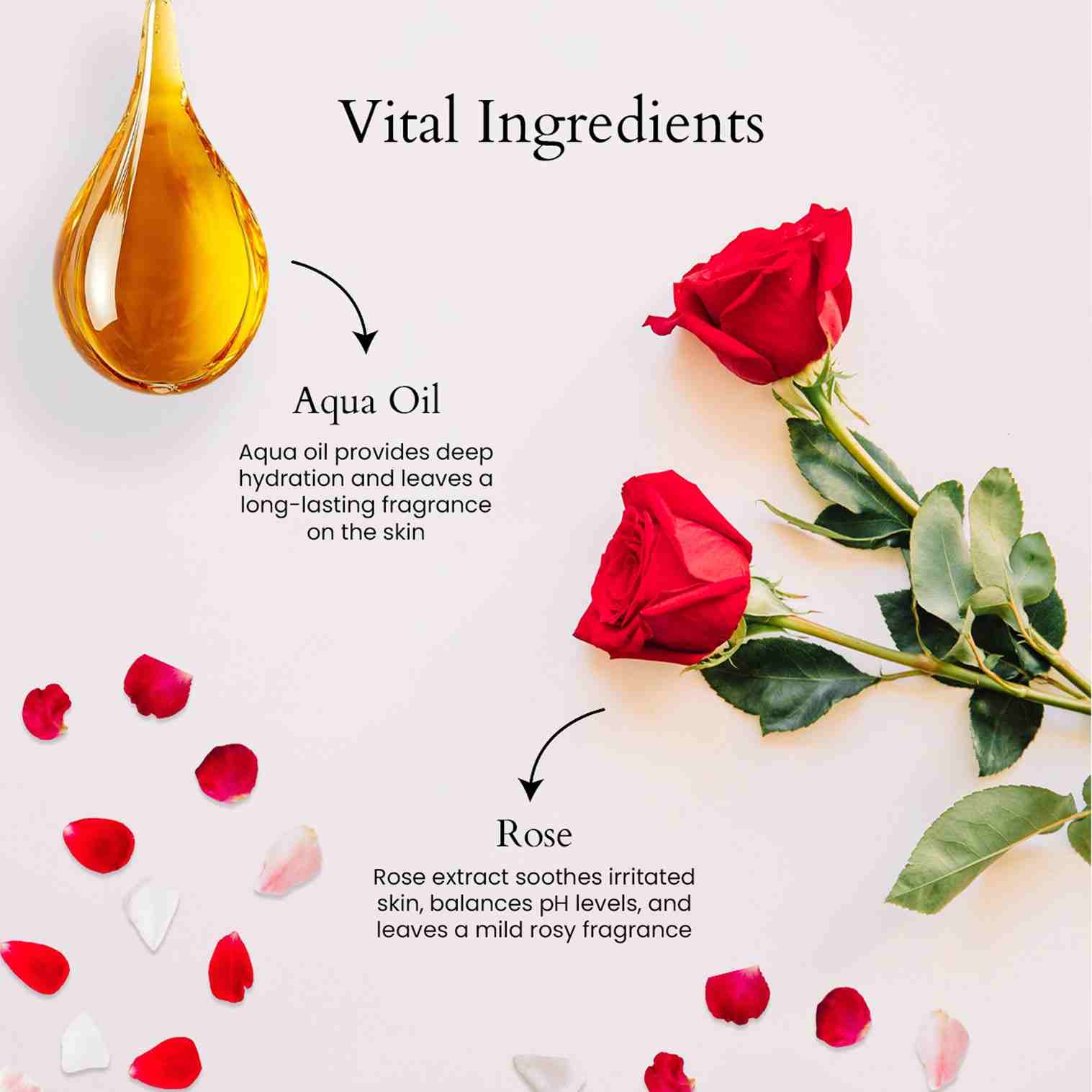 Key Ingredients : Deodorized Rose Water and Aqua Oil