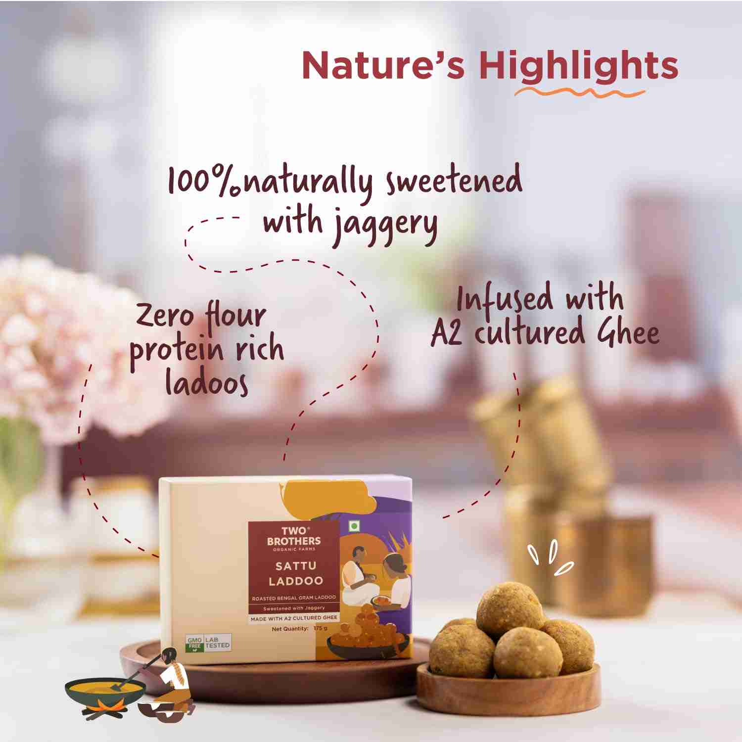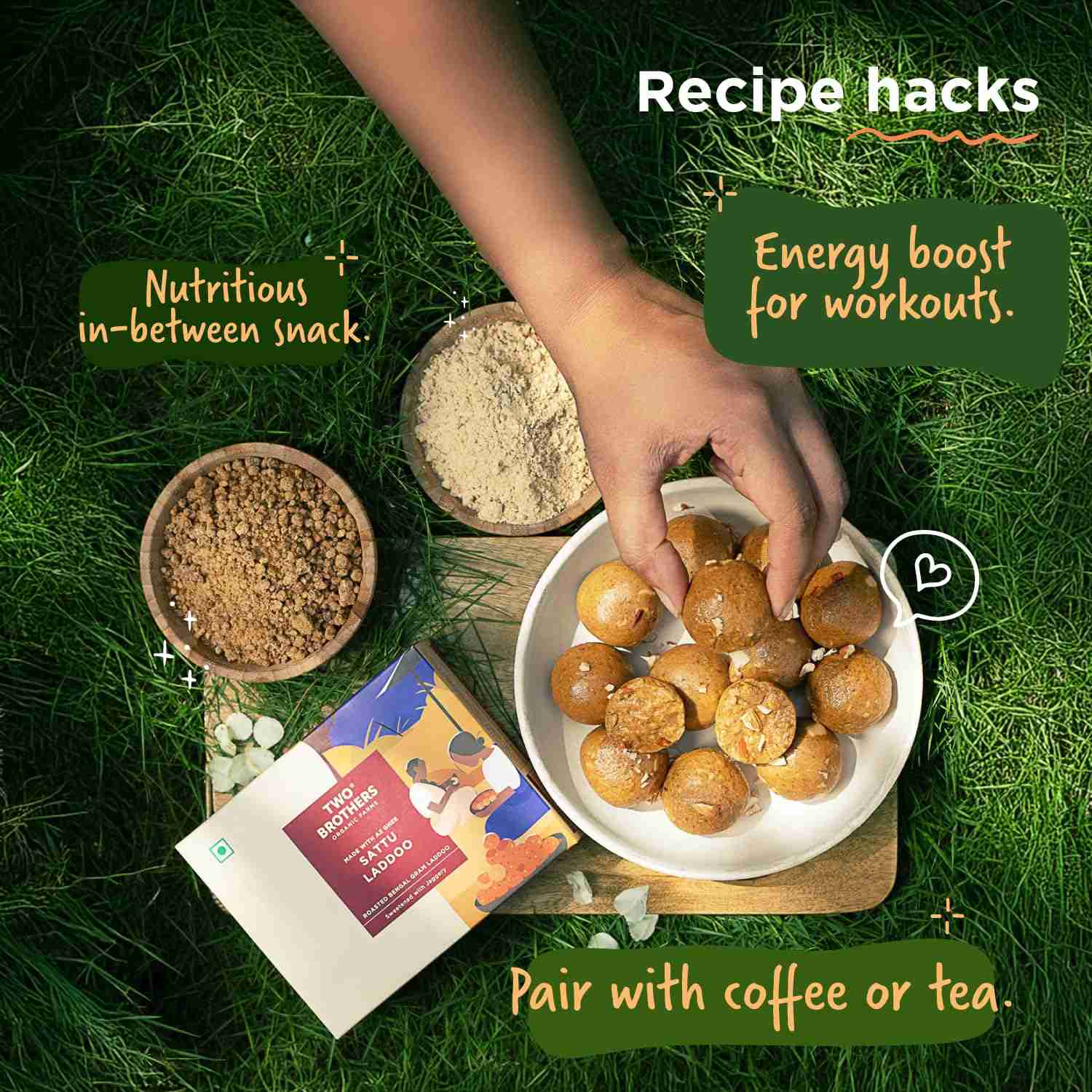 These Bliss Balls (Laddu) are made with Sattu, an ancient superfood, and sweetened with jaggery.