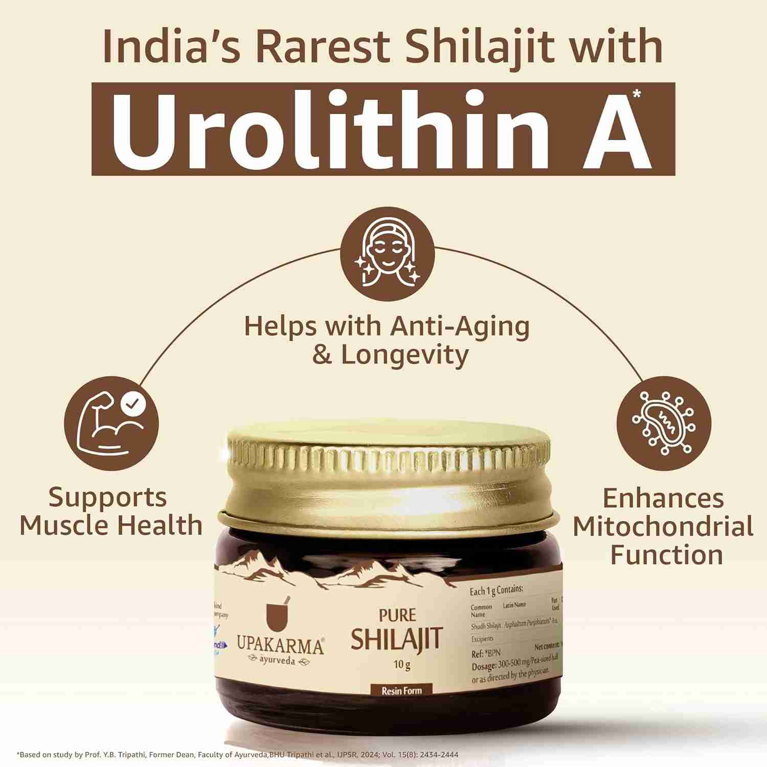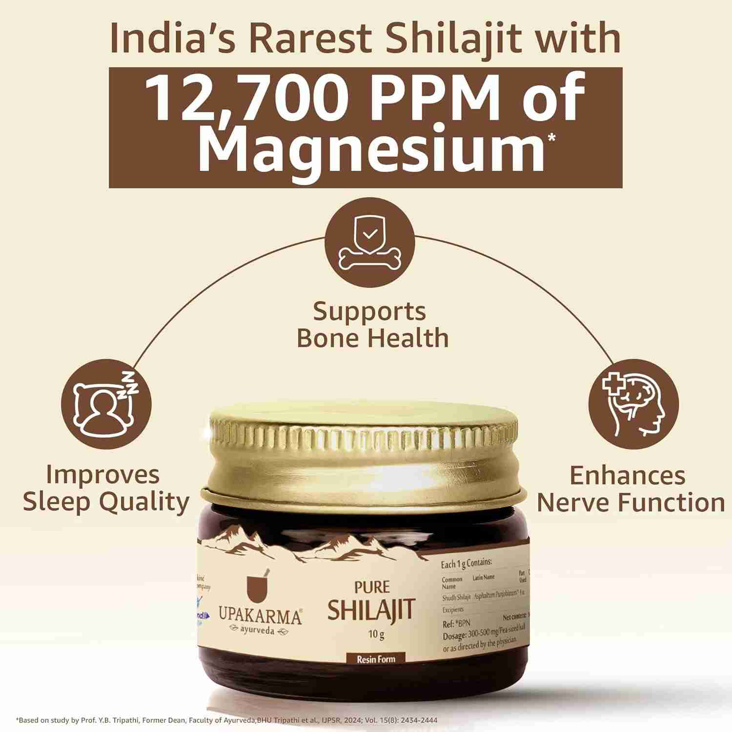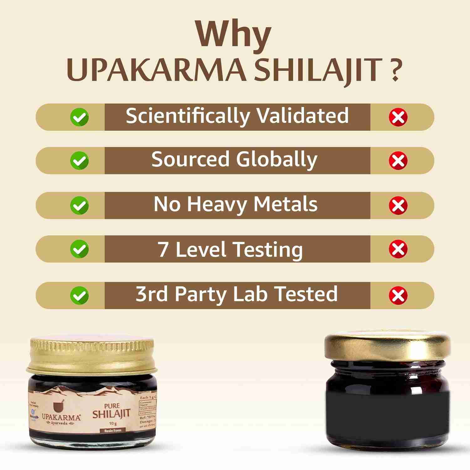 Upakarma ayurveda pure shilajit resin for stronger strength and stamina. Now available in affordable 10g pack. Try now with small pack.