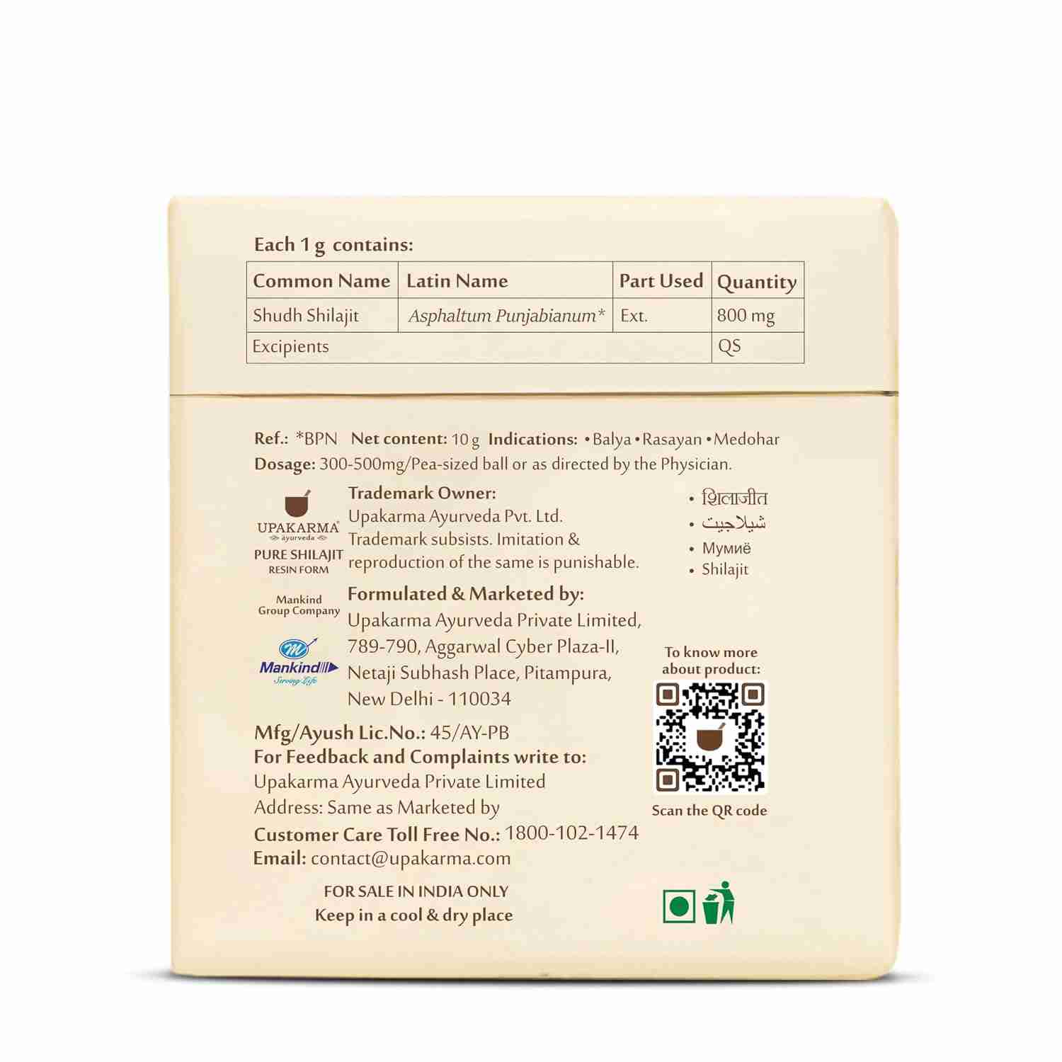 The weight of Upakarma Pure Shilajit resin product is 10g.